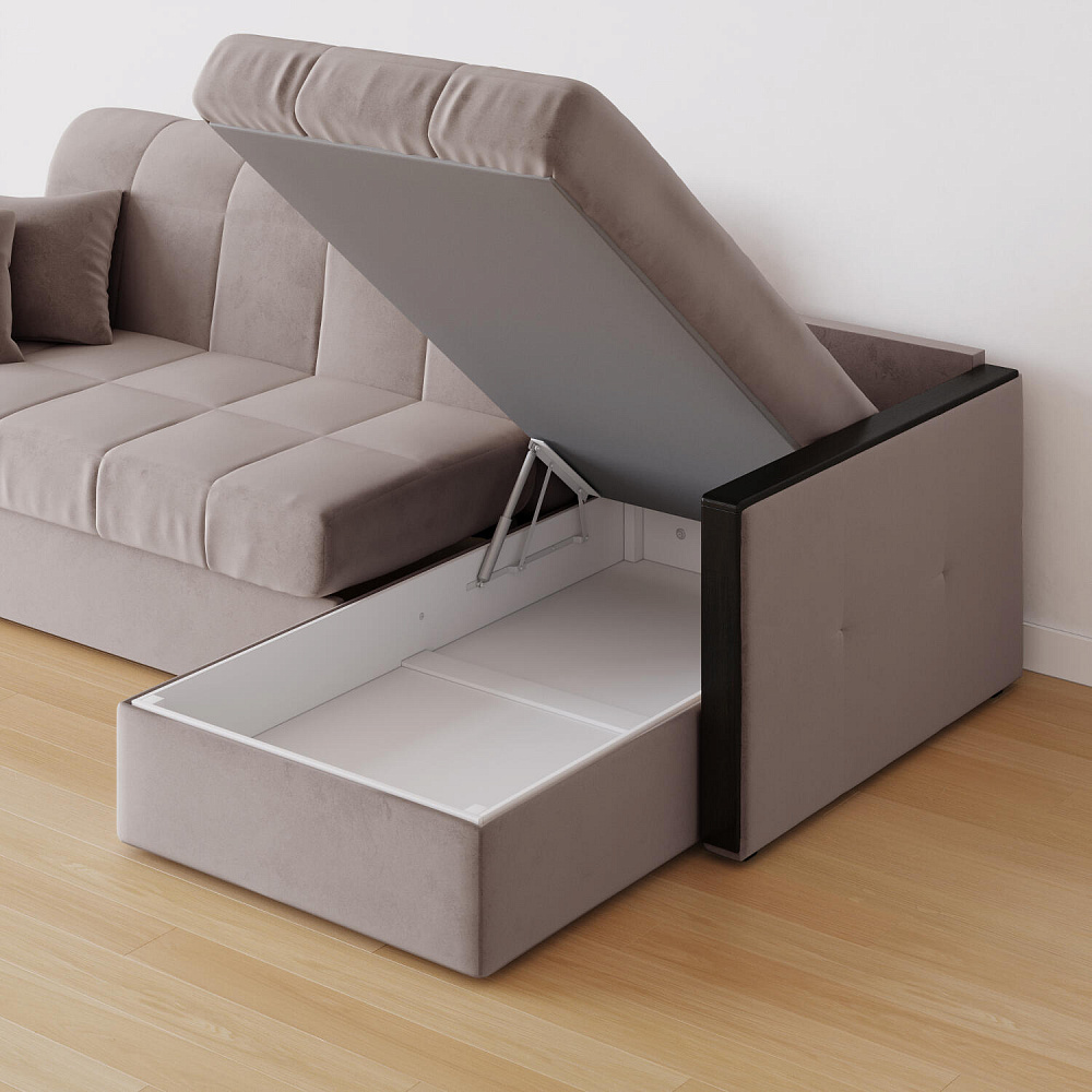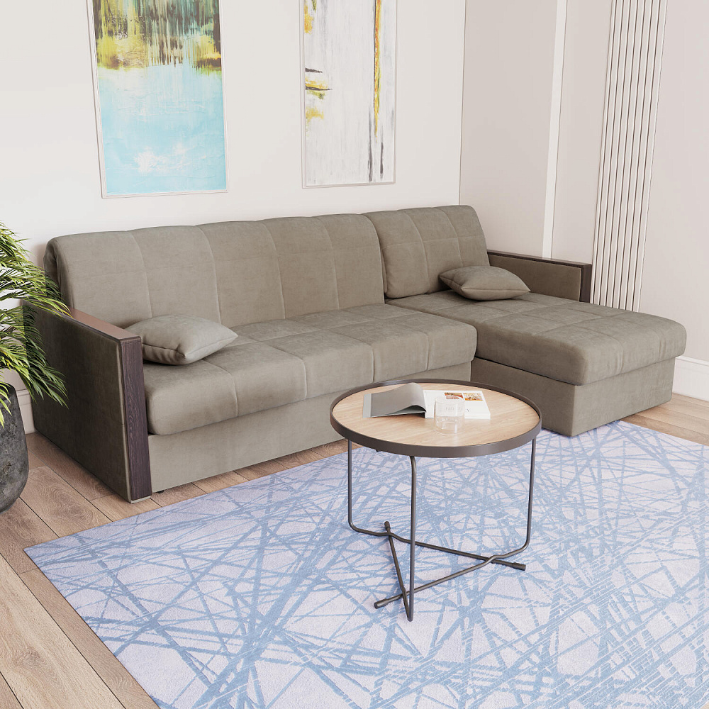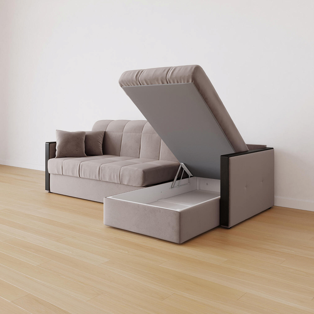 Угловой диван «Бристоль» с оттоманкой сделает отдых ещё удобнее. Модель оснащена накладками на подлокотниках, на которые удобно положить ТВ-пульт или смартфон. В оттоманке находится вместительный отсек для постельного белья и других вещей. Благодаря механизму трансформации «Аккордеон» диван легко превращается в полноценную кровать для одного-двух человек. Пропорциональные формы, плавные линии декоративного канта подчеркивают лаконичный дизайн, поэтому диван подойдет для любого современного интерьера.