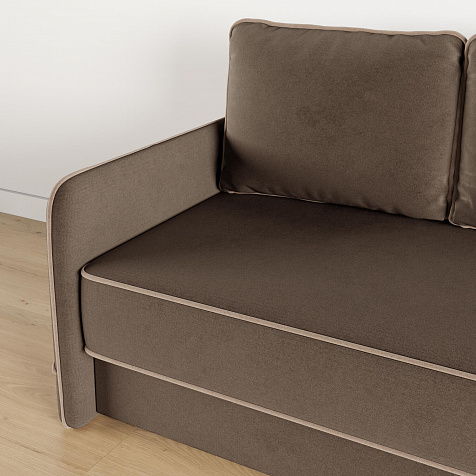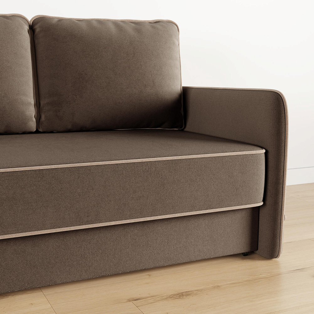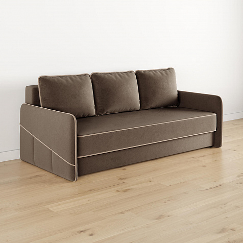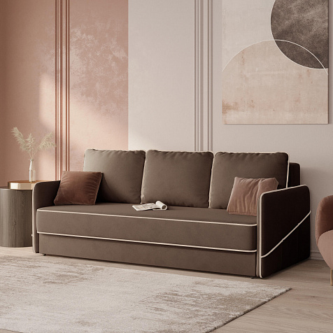 Диван «Симпл» станет стильным акцентом в современной гостиной. Контрастный кант на обивке из мягкого велюра придаёт дизайну дивана завершённый вид и подчёркивает мягкую геометричность. Механизм трансформации «Еврокнижка» в сложенном виде позволяет сэкономить пространство в комнате, в разложенном — обеспечивает комфортное и ровное спальное место. Спинка дивана выполнена в той же обивке, что и основная часть, что даёт возможность использовать диван для зонирования комнаты.