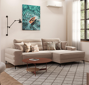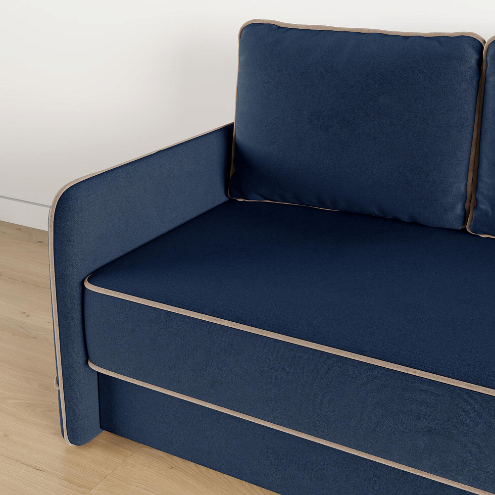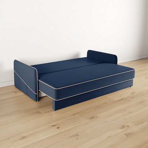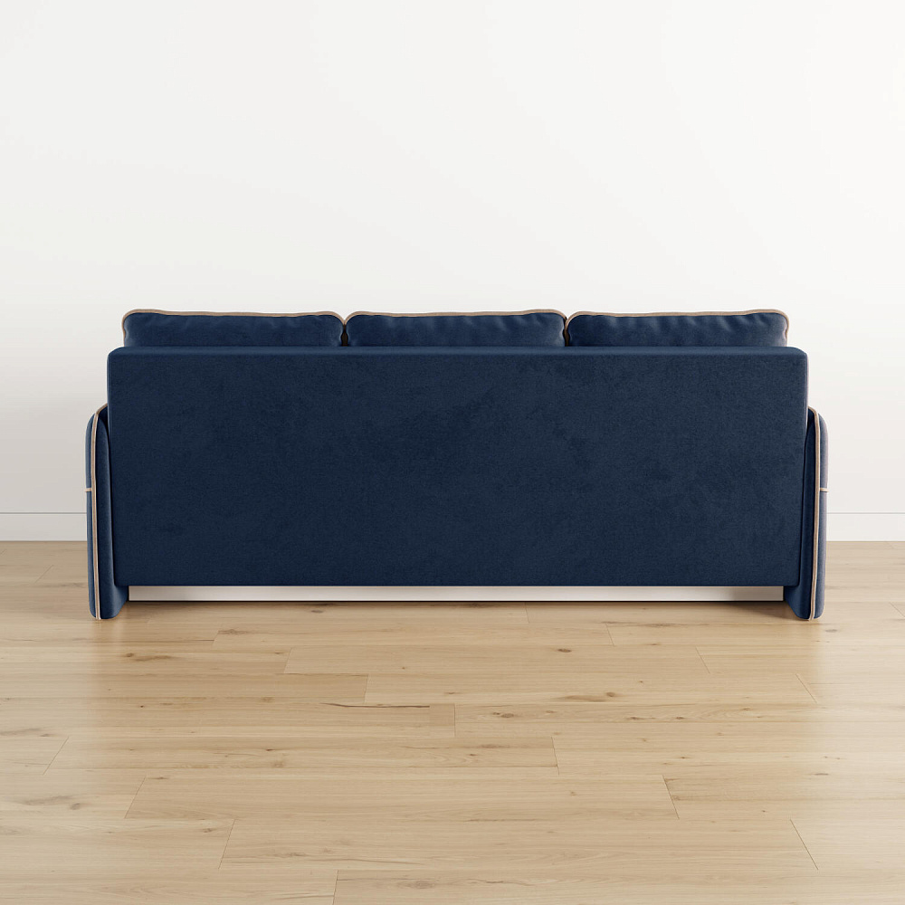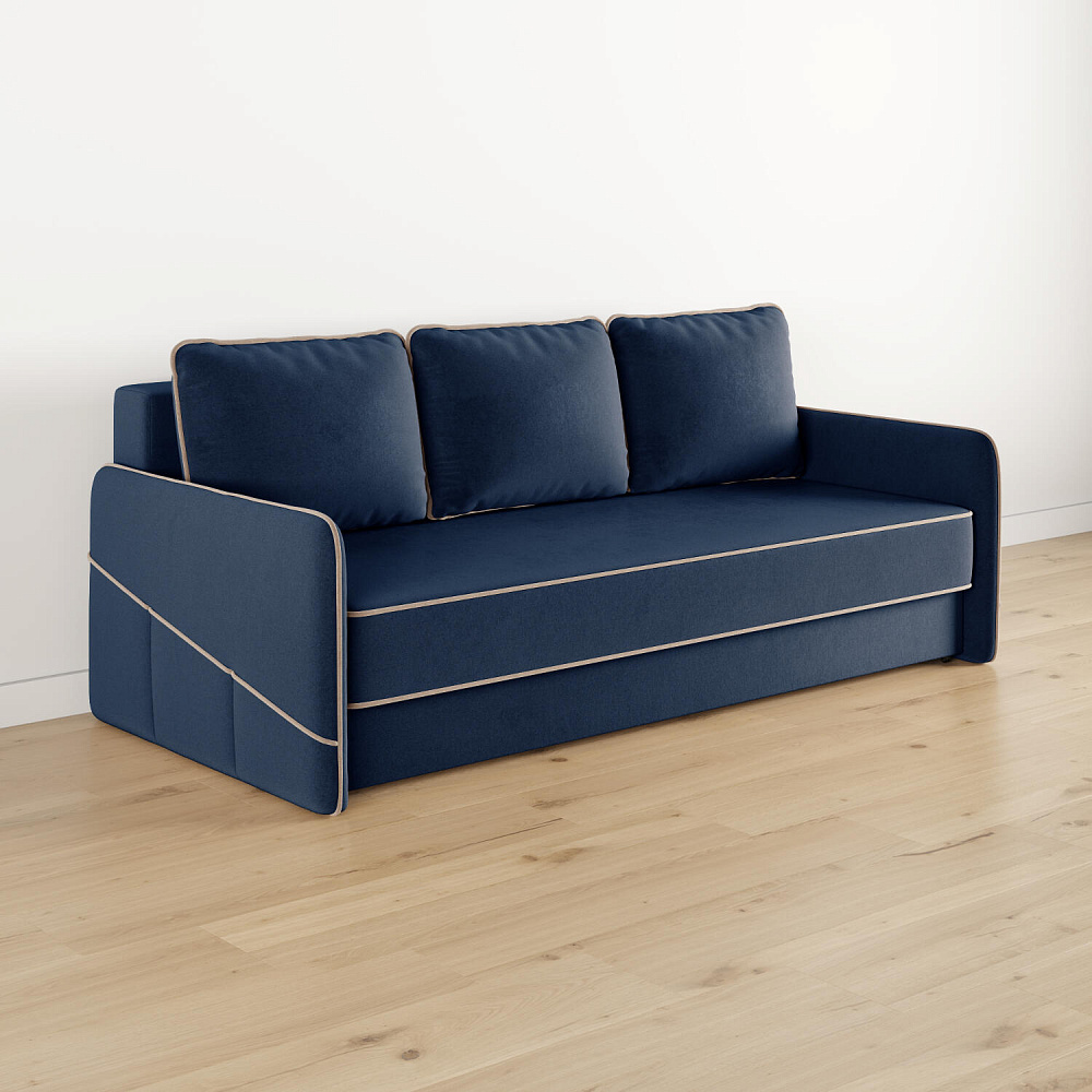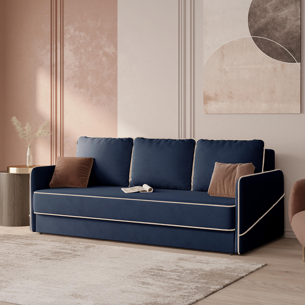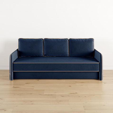 Диван «Симпл» станет стильным акцентом в современной гостиной. Контрастный кант на обивке из мягкого велюра придаёт дизайну дивана завершённый вид и подчёркивает мягкую геометричность. Механизм трансформации «Еврокнижка» в сложенном виде позволяет сэкономить пространство в комнате, в разложенном — обеспечивает комфортное и ровное спальное место. Спинка дивана выполнена в той же обивке, что и основная часть, что даёт возможность использовать диван для зонирования комнаты.