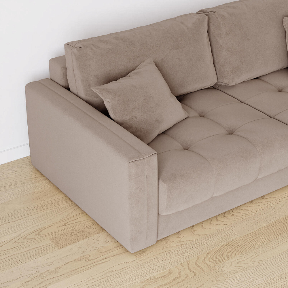 Диван «Дензел» — лучший вариант для ценителей комфорта в сочетании со стильным дизайном. Диван обладает глубокой посадкой, а приспинные и декоративные подушки позволят создать самое удобное место для отдыха. Спинка дивана выполнена в той же обивке, что и основная часть, что даёт возможность использовать диван для зонирования комнаты.