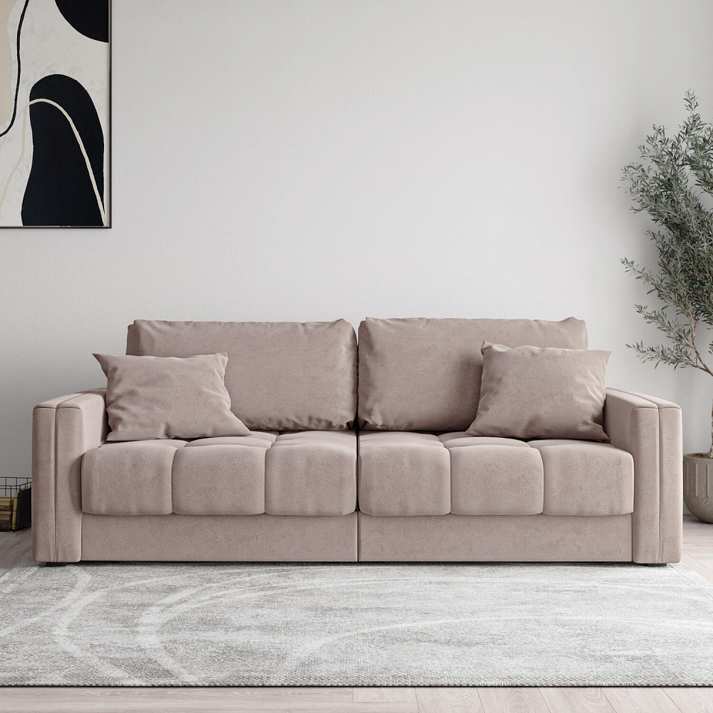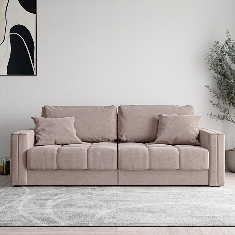 - Два вида подушек. В комплектацию дивана входят две приспинные и две декоративные подушки, которые позволяют удобно корректировать глубину посадки.