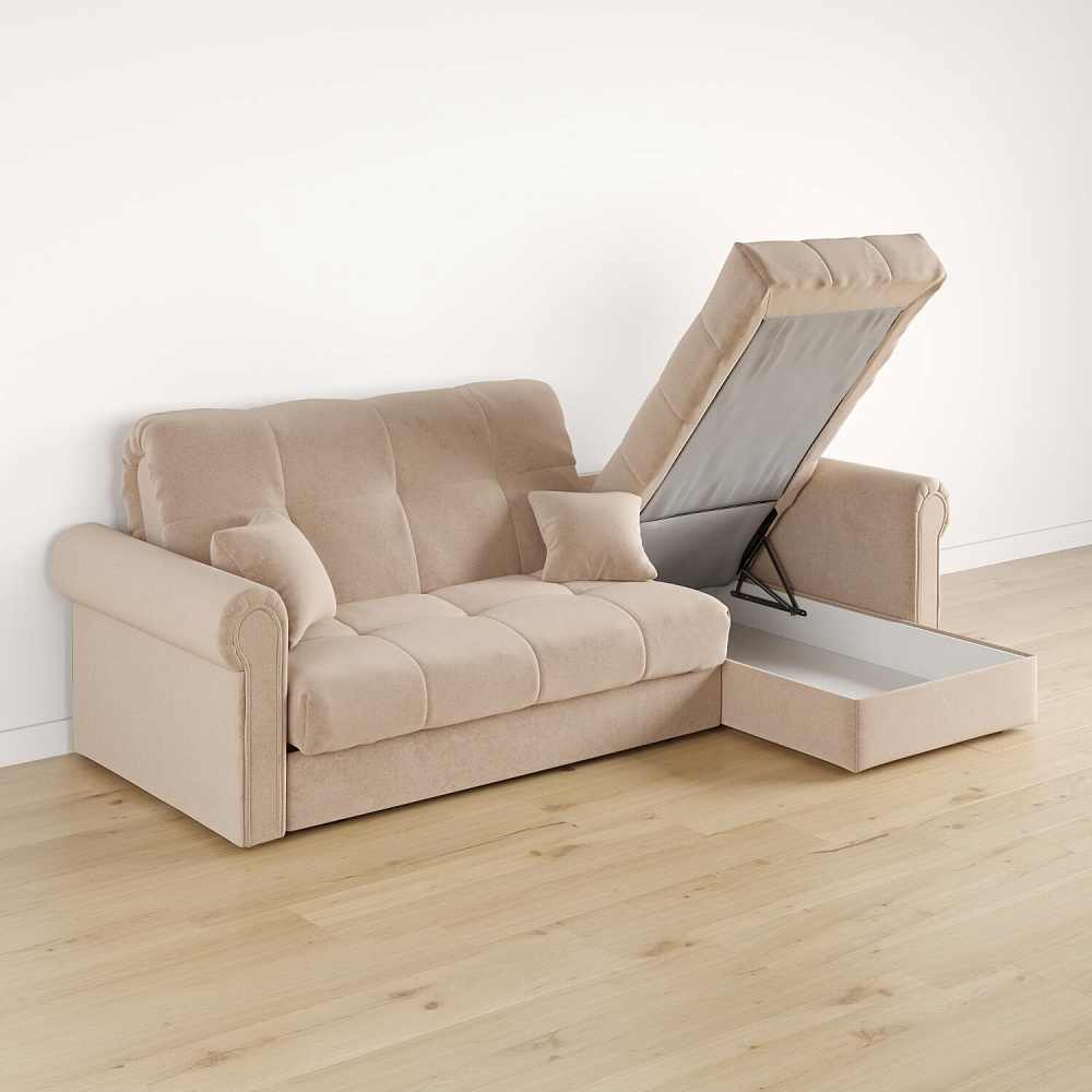 - Короб для белья. В оттоманке дивана скрыт просторный бельевой ящик, в котором можно разместить все необходимые постельные принадлежности.