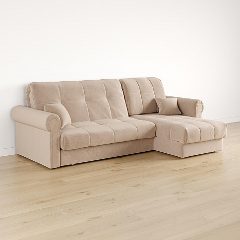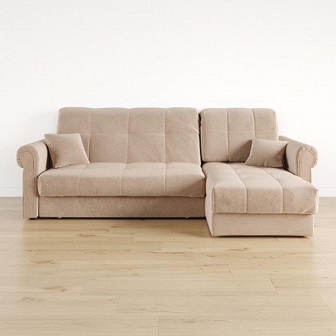 - Универсальный угол. Диван подстроится под условия помещения — оттоманка устанавливается как слева, так и справа.