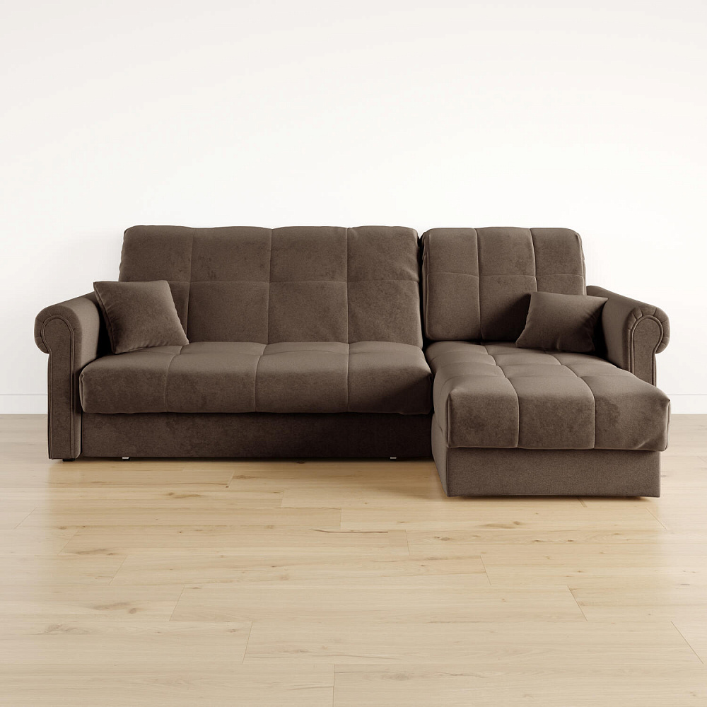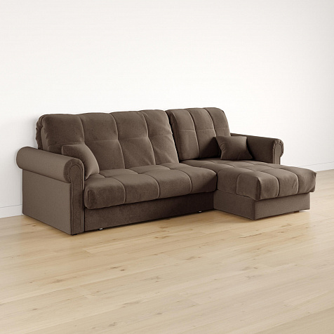 - Универсальный угол. Диван подстроится под условия помещения — оттоманка устанавливается как слева, так и справа.
