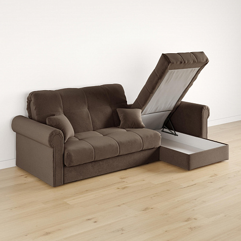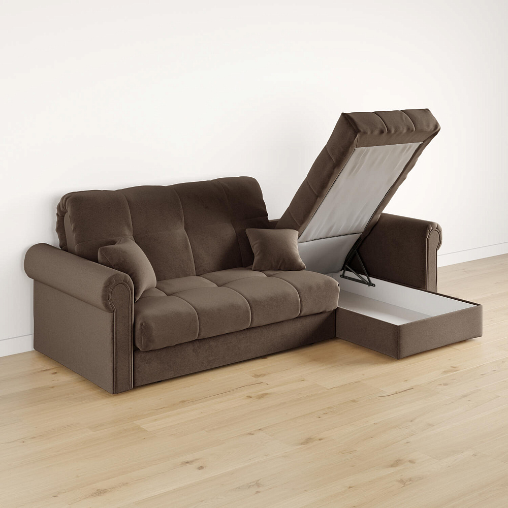 - Короб для белья. В оттоманке дивана скрыт просторный бельевой ящик, в котором можно разместить все необходимые постельные принадлежности.