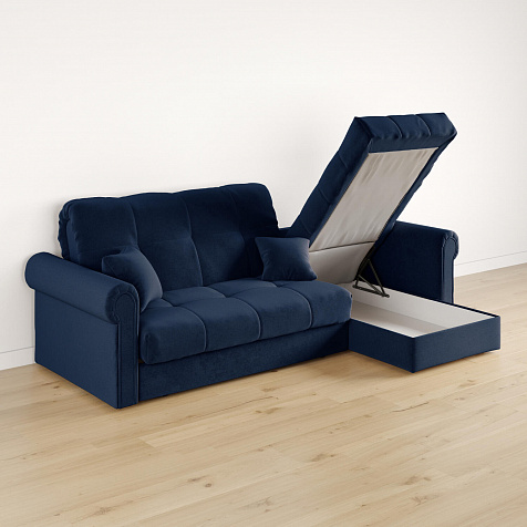 - Короб для белья. В оттоманке дивана скрыт просторный бельевой ящик, в котором можно разместить все необходимые постельные принадлежности.