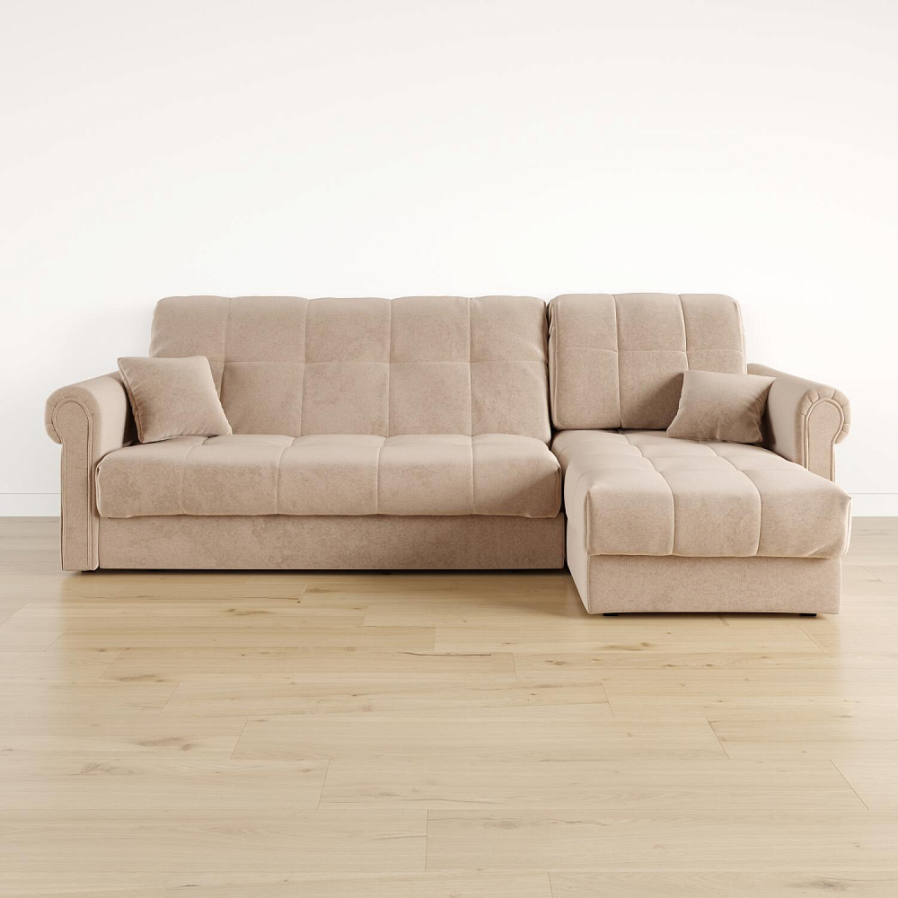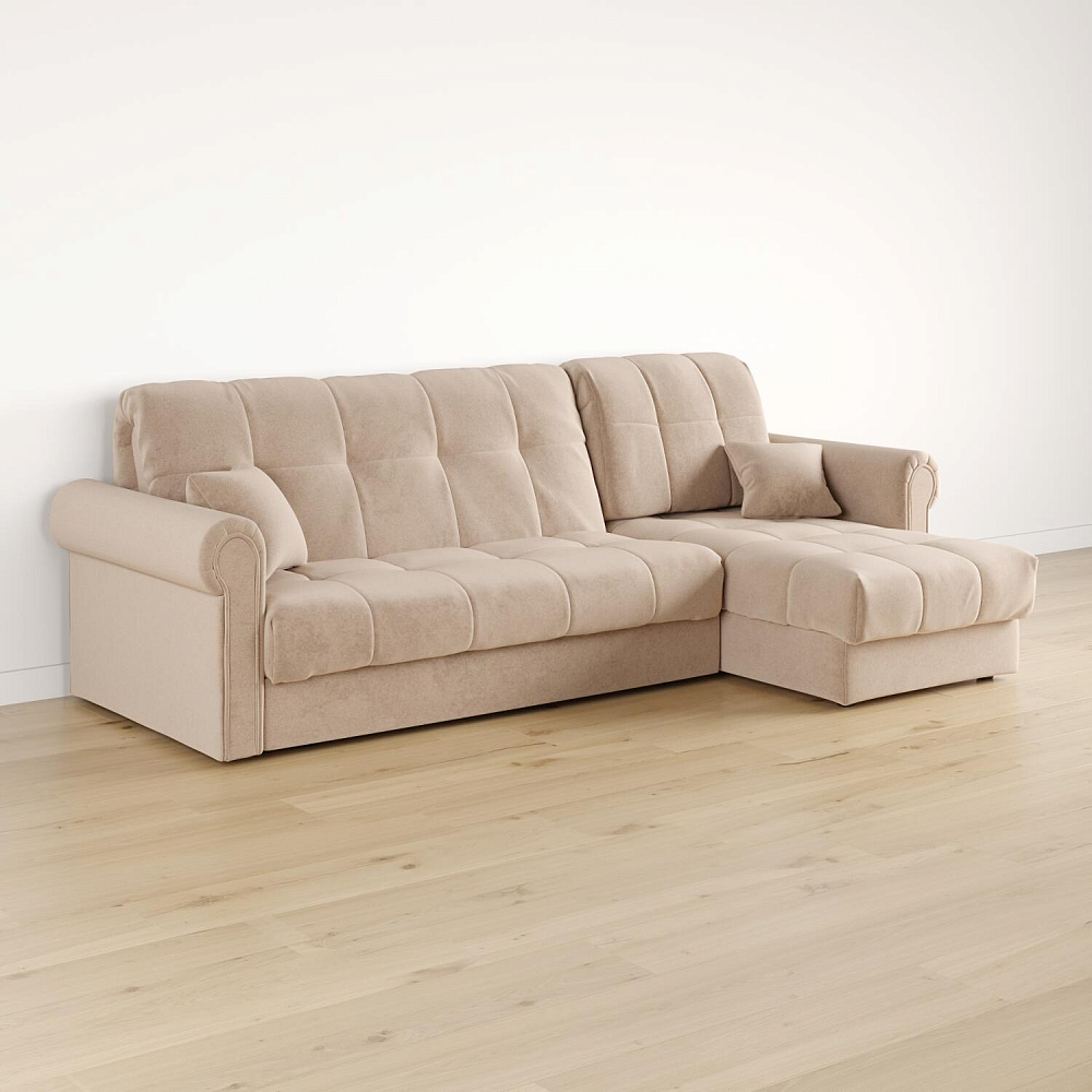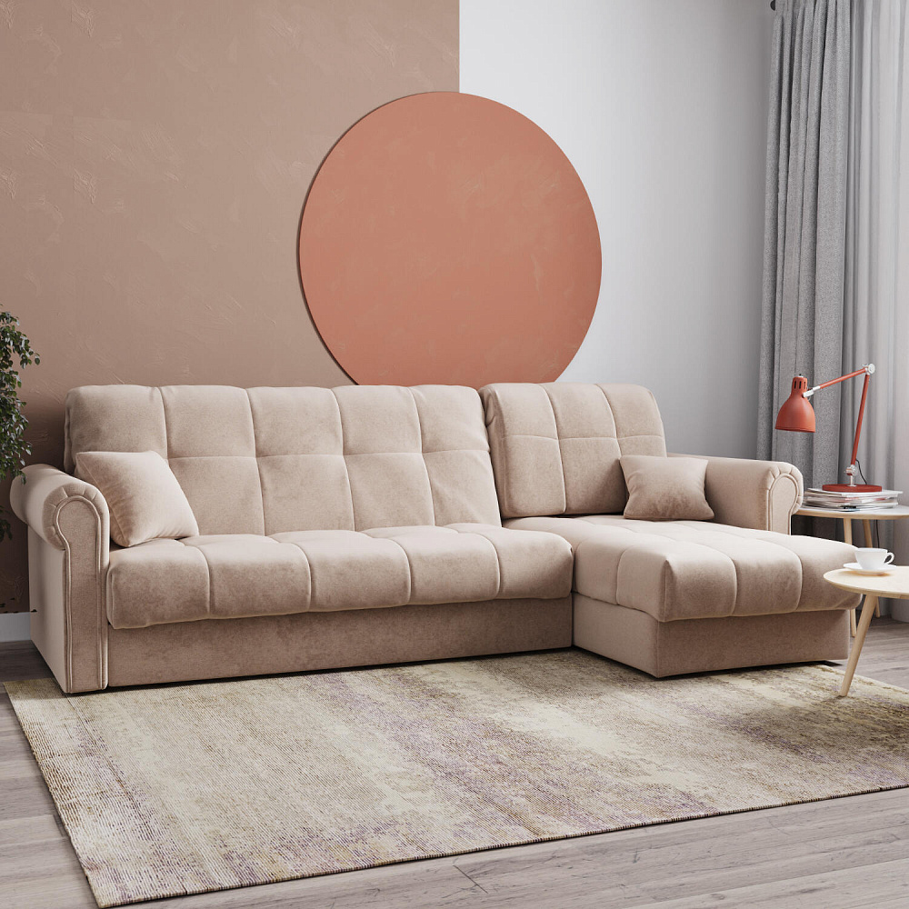 - Универсальный угол. Диван подстроится под условия помещения — оттоманка устанавливается как слева, так и справа.