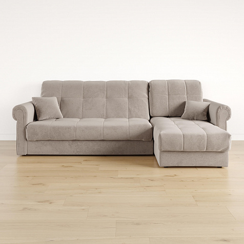 - Универсальный угол. Диван подстроится под условия помещения — оттоманка устанавливается как слева, так и справа.