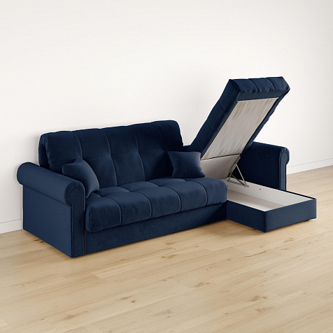 - Короб для белья. В оттоманке дивана скрыт просторный бельевой ящик, в котором можно разместить все необходимые постельные принадлежности.