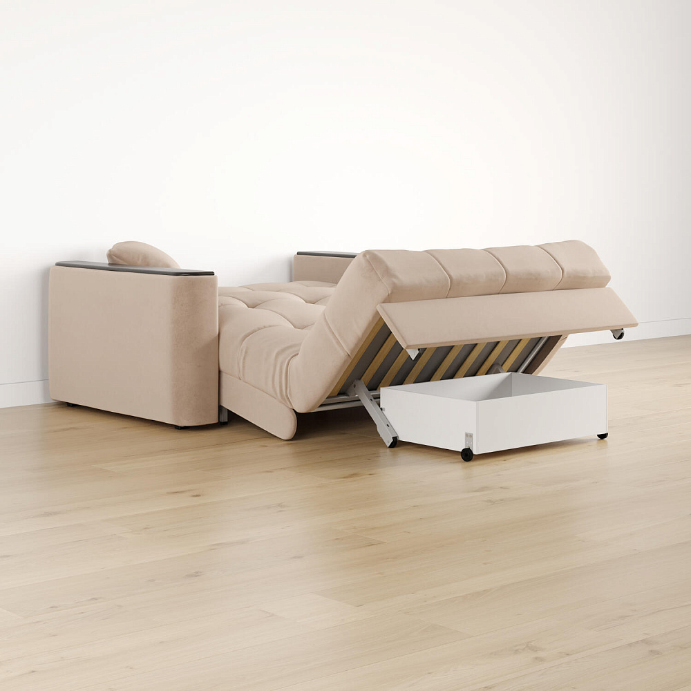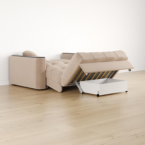 - Механизм трансформации «Аккордеон». Надёжный и простой в использовании механизм. Приподнимите сиденье и слегка потяните на себя, диван сам разложится.