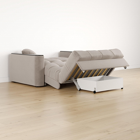 - Механизм трансформации «Аккордеон». Надёжный и простой в использовании механизм. Приподнимите сиденье и слегка потяните на себя, диван сам разложится.