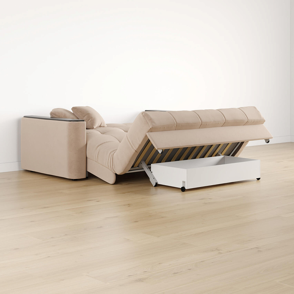 - Механизм трансформации «Аккордеон». Надёжный и простой в использовании механизм. Приподнимите сиденье и слегка потяните на себя, диван сам разложится.