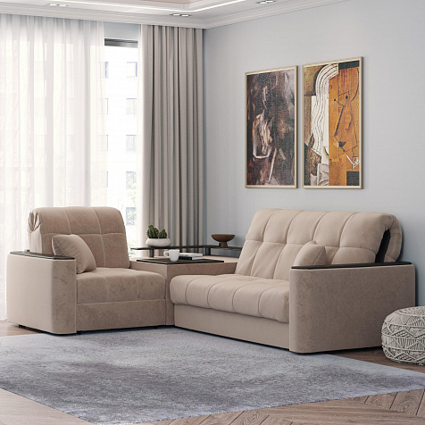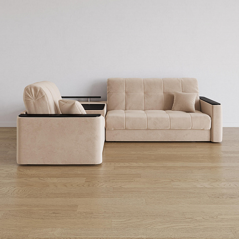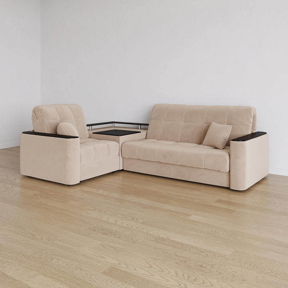 Диван угловой «Камелот» с баром станет главным местом для отдыха и приема гостей. Модель оснащена баром, на котором можно расположить еду и напитки во время просмотра фильмов и сериалов. Пропорциональные формы, плавные линии на сиденье и спинке подчеркивают лаконичный дизайн, поэтому диван подойдёт для любого современного интерьера. Диван создаст в комнате комфортную обстановку и придаст ей неповторимый вид.