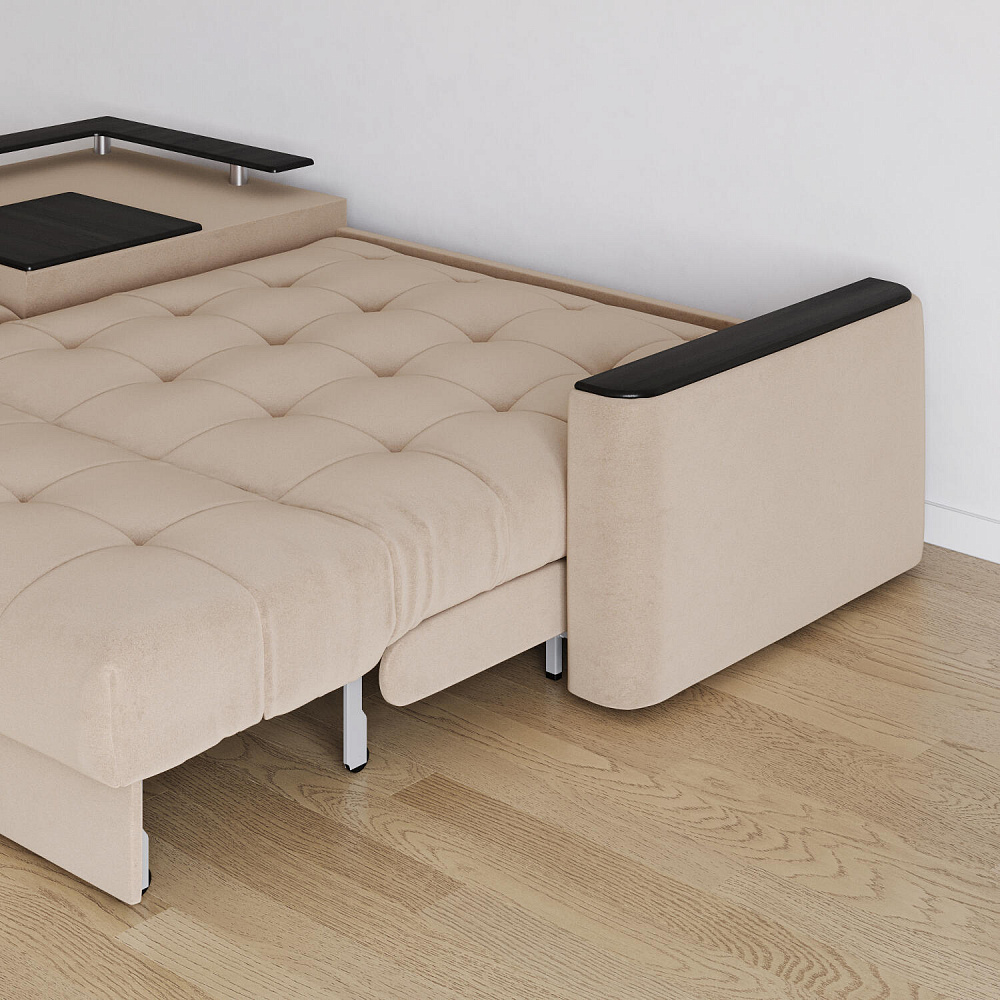 - Вместительная система хранения. Под баром расположен вместительный короб, а в угловом модуле — глубокий ящик. В них удобно хранить одеяла, подушки, пледы и постельное белье.