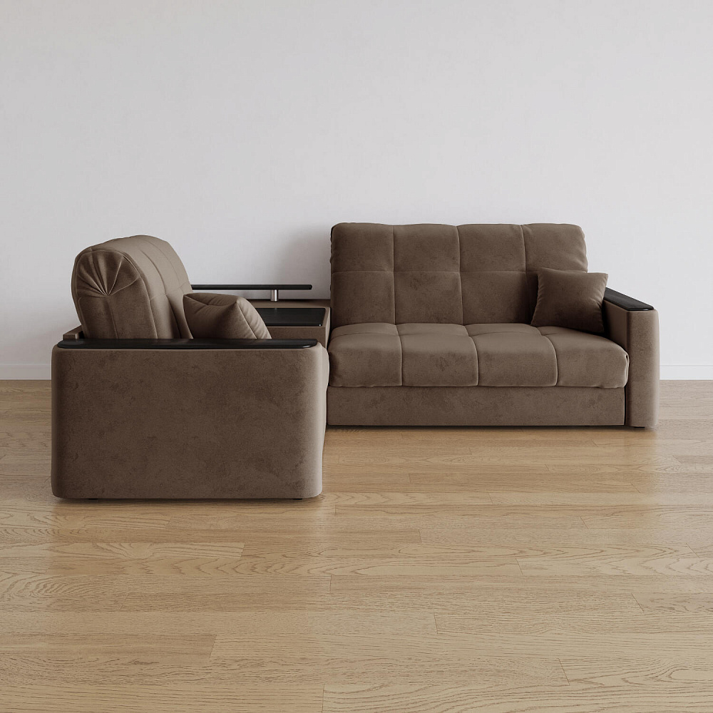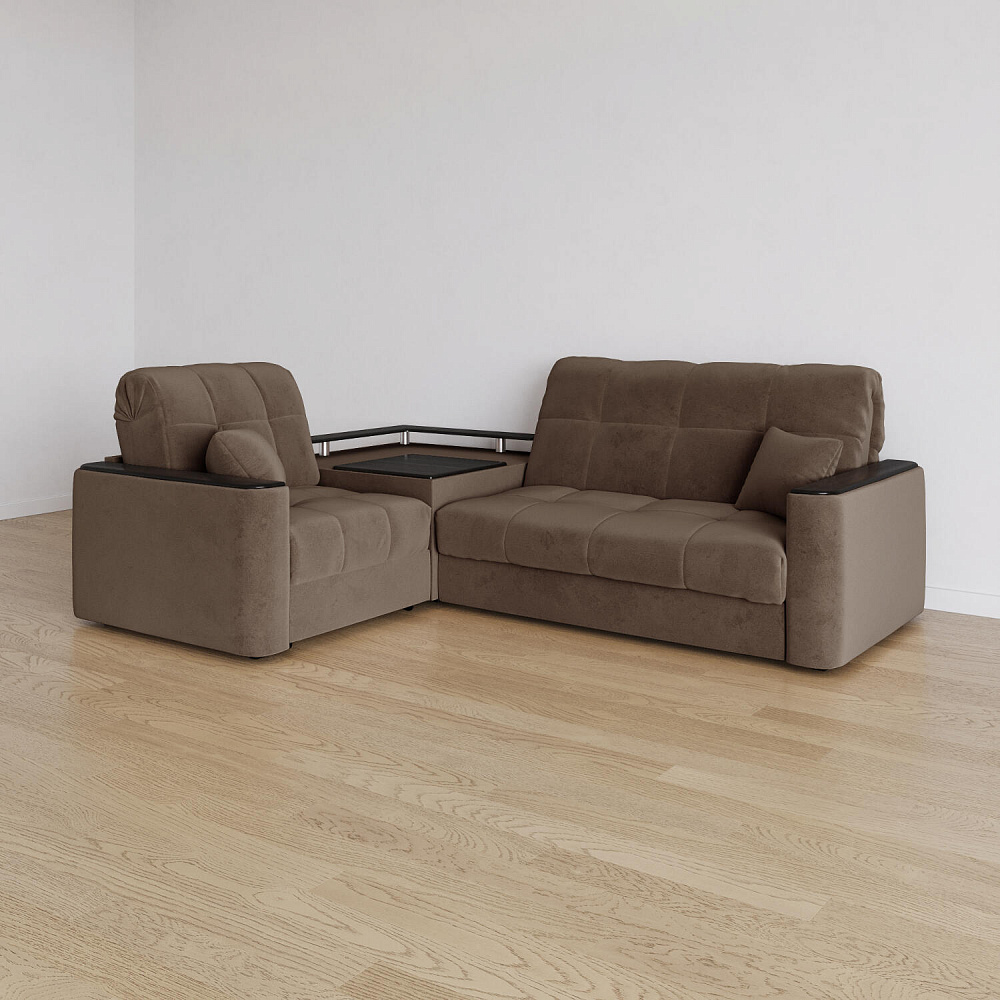 - Универсальный угол. Диван подстроится под условия помещения — бар устанавливается как слева, так и справа.