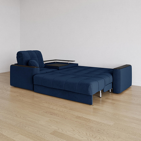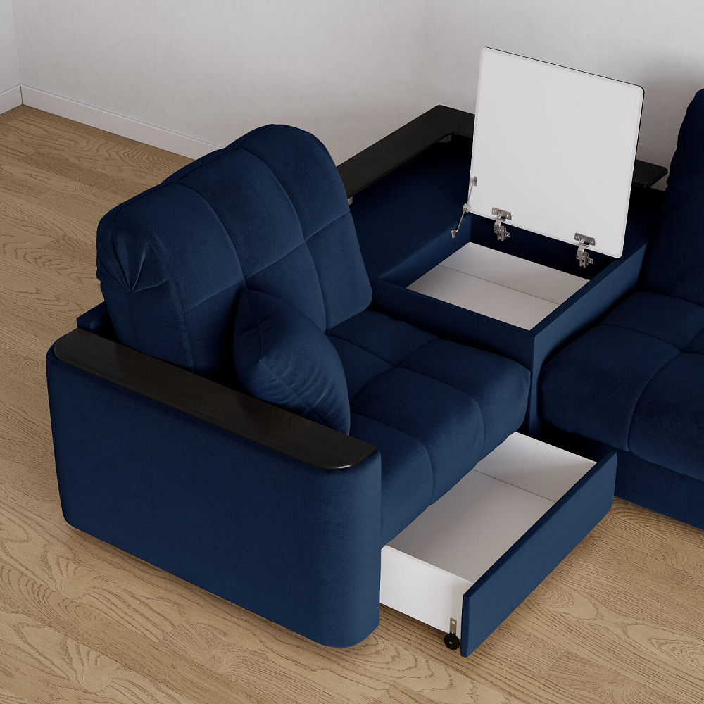 - Вместительная система хранения. Под баром расположен вместительный короб, а в угловом модуле — глубокий ящик. В них удобно хранить одеяла, подушки, пледы и постельное белье.