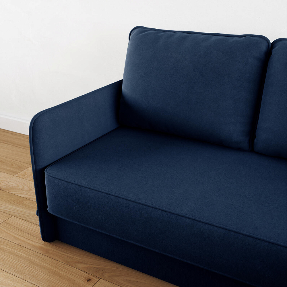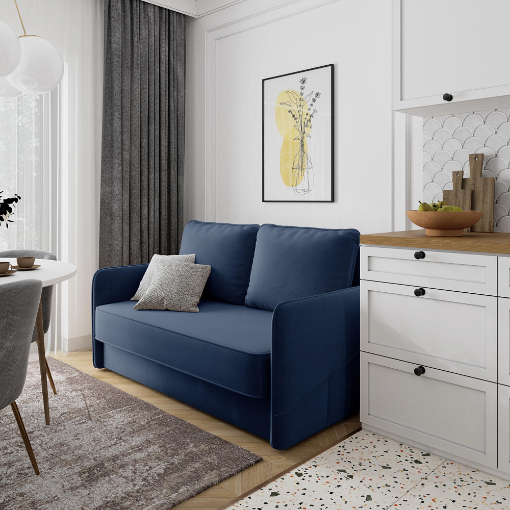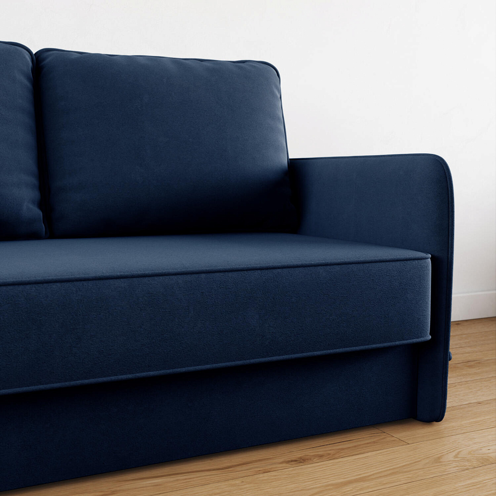 Двухместный диван «Симпл» с узкими подлокотниками станет стильным акцентом в современной гостиной или кухне. Кант на обивке из мягкого велюра придаёт дизайну завершённый вид, подчёркивает скруглённую форму углов. Механизм трансформации обеспечивает комфортное и ровное спальное место. Спинка дивана выполнена в основной обивочной ткани, что даёт возможность использовать диван для зонирования комнаты.