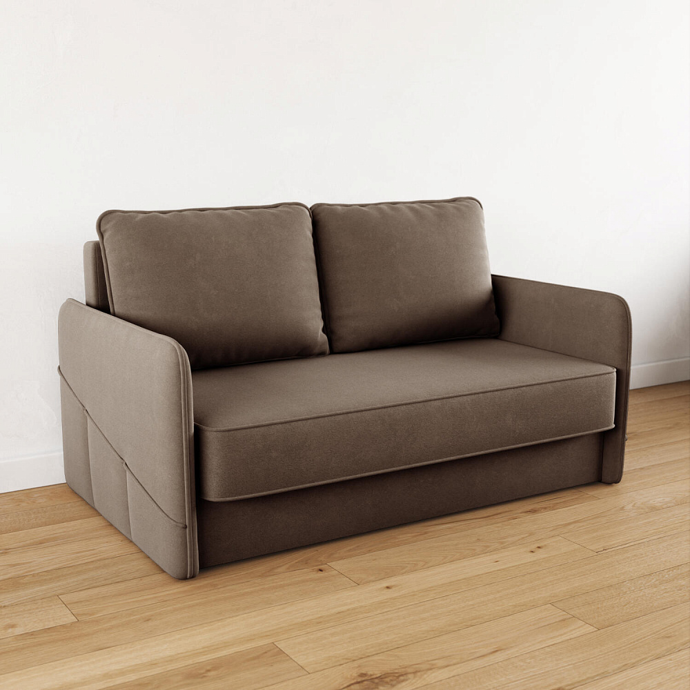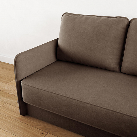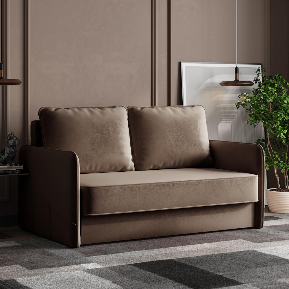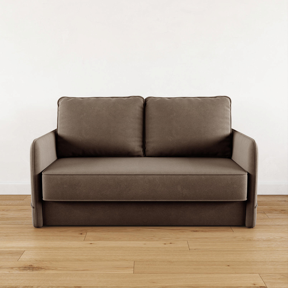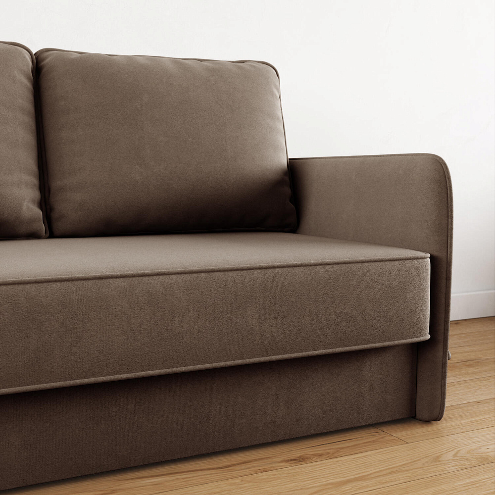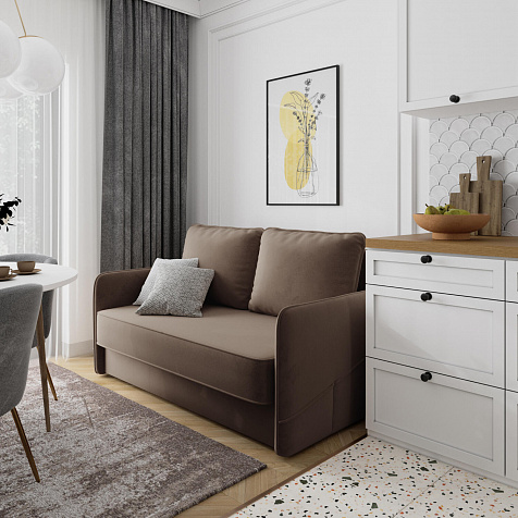 Двухместный диван «Симпл» с узкими подлокотниками станет стильным акцентом в современной гостиной или кухне. Кант на обивке из мягкого велюра придаёт дизайну завершённый вид, подчёркивает скруглённую форму углов. Механизм трансформации обеспечивает комфортное и ровное спальное место. Спинка дивана выполнена в основной обивочной ткани, что даёт возможность использовать диван для зонирования комнаты.