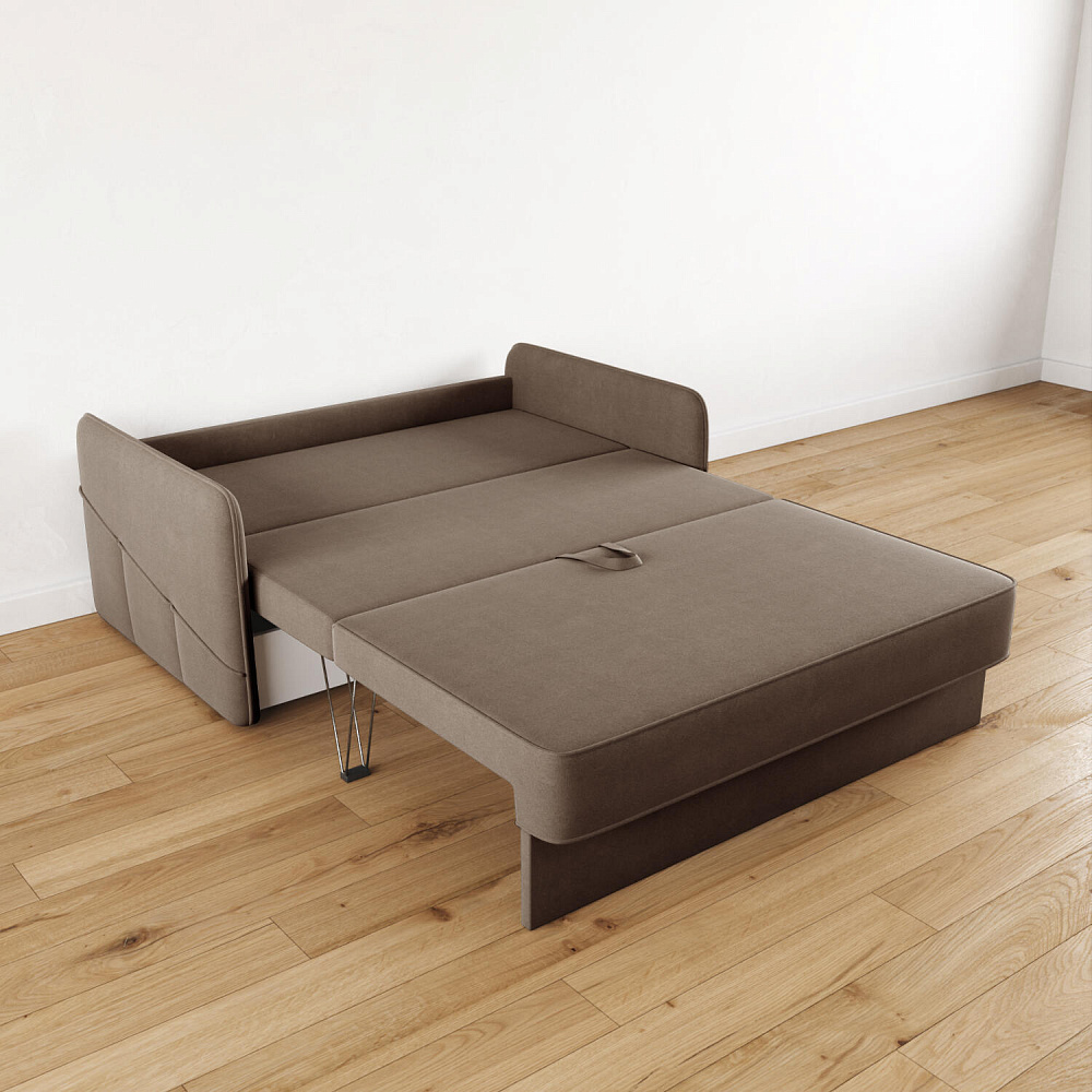 Механизм трансформации «Трёхсекционная Еврокнижка». Для трансформации нужно приподнять и вытянуть вперёд сиденье, затем опустить спинку. Двигается только передняя часть, поэтому отодвигать диван от стены не требуется.