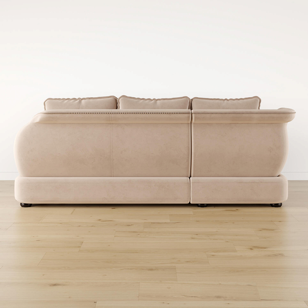 - Дизайн «360 градусов». Задняя часть спинки выполнена в той же обивке, что и основная, позволяя расположить диван в центре комнаты, не испортив внешний вид интерьера.