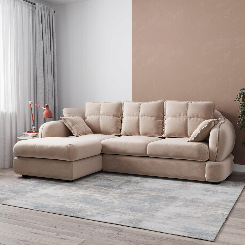 Угловой левый диван «Неаполь» - это идеальное сочетание стиля и функциональности. Плавные округлые линии подчеркивают элегантный внешний вид модели. Диван обладает комфортной посадкой за счет глубокого мягкого сиденья и высокой спинки, что способствует поддержке позвоночника в шейно-плечевой и поясничной областях. На таком вместительном диване удобно отдыхать всей семьёй или разместить большую компанию друзей.