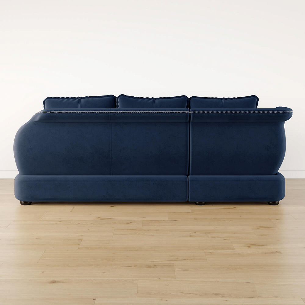 - Дизайн «360 градусов». Задняя часть спинки выполнена в той же обивке, что и основная, позволяя расположить диван в центре комнаты, не испортив внешний вид интерьера.