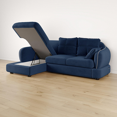 - Ящик для белья. В конструкции дивана предусмотрено вместительное отделение под подъемной угловой частью для хранения постельных принадлежностей.
