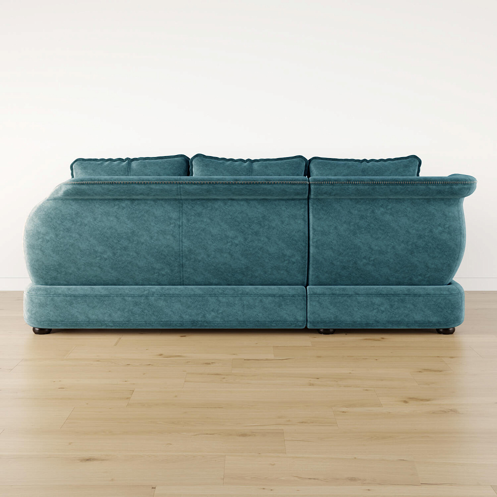 - Дизайн «360 градусов». Задняя часть спинки выполнена в той же обивке, что и основная, позволяя расположить диван в центре комнаты, не испортив внешний вид интерьера.