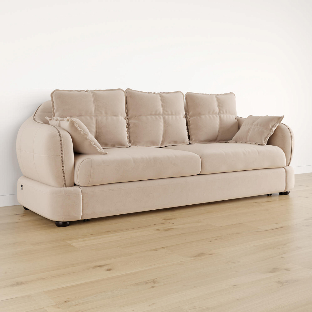 Прямой трехместный диван «Неаполь» - это идеальное сочетание стиля и функциональности. Плавные округлые линии подчеркивают элегантный внешний вид модели. Диван обладает комфортной посадкой за счет глубокого мягкого сиденья и высокой спинки, что способствует поддержке позвоночника в шейно-плечевой и поясничной областях.
