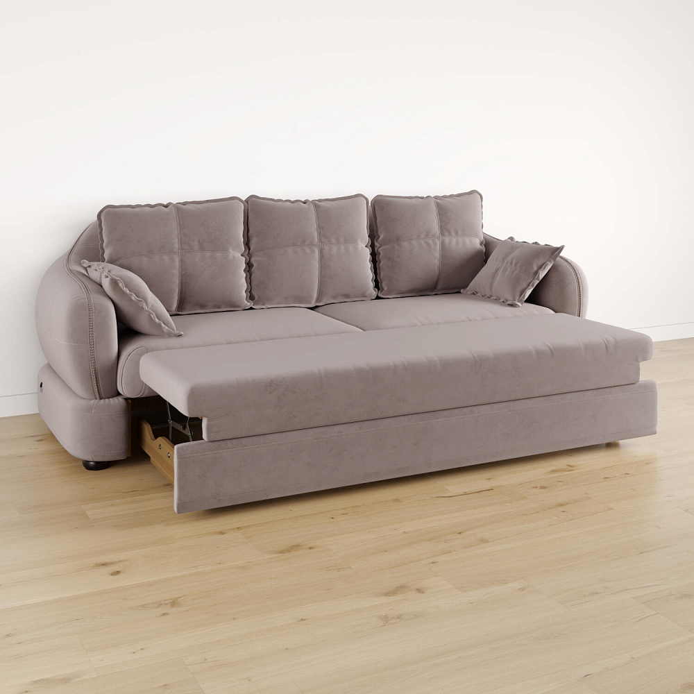 Прямой трехместный диван «Неаполь» - это идеальное сочетание стиля и функциональности. Плавные округлые линии подчеркивают элегантный внешний вид модели. Диван обладает комфортной посадкой за счет глубокого мягкого сиденья и высокой спинки, что способствует поддержке позвоночника в шейно-плечевой и поясничной областях.