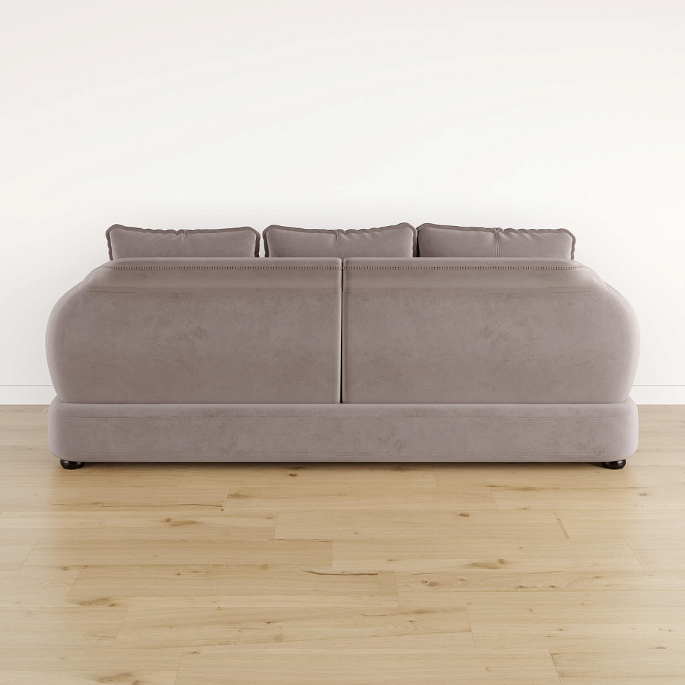 - Дизайн «360 градусов». Задняя часть спинки выполнена в той же обивке, что и основная, позволяя расположить диван в центре комнаты, не испортив внешний вид интерьера.