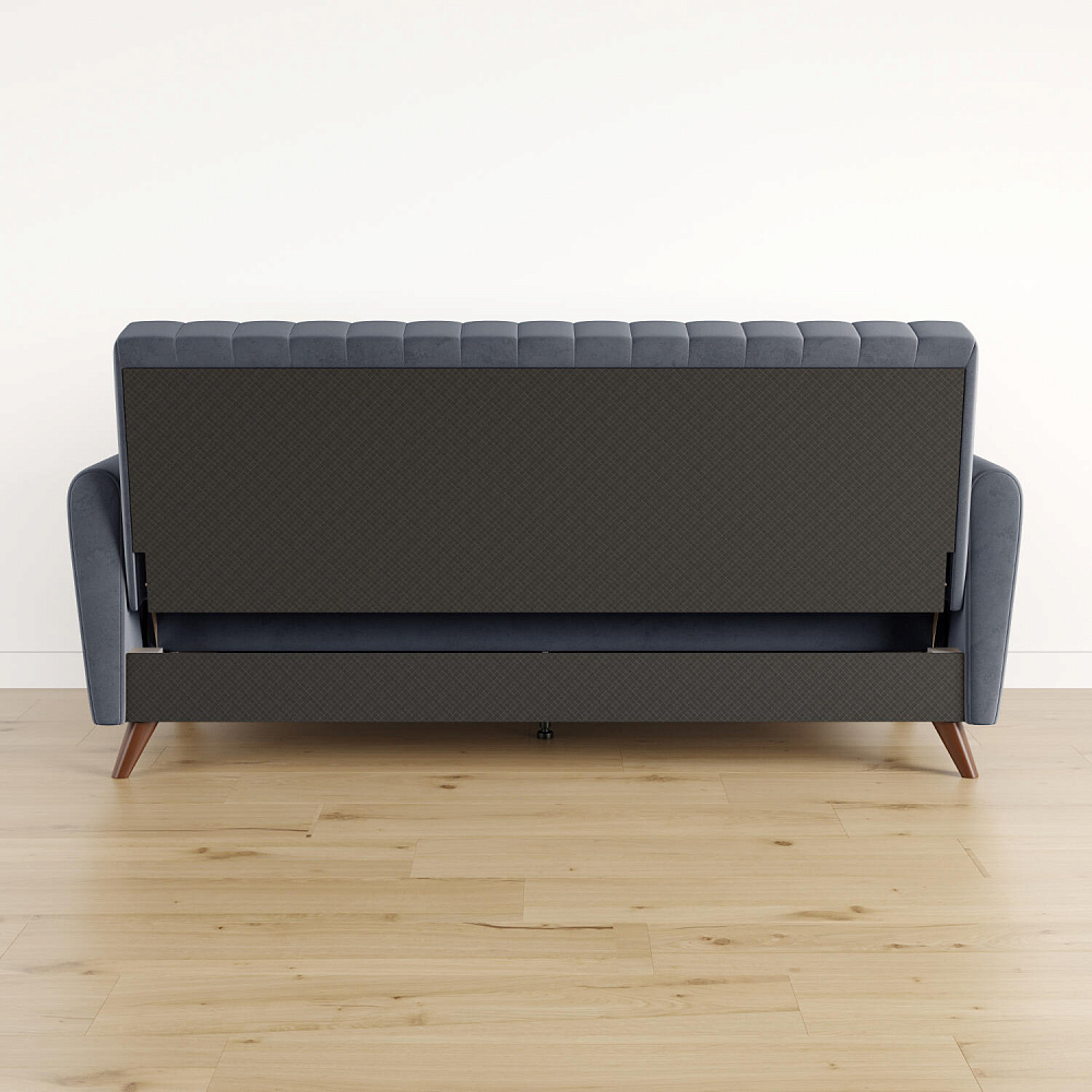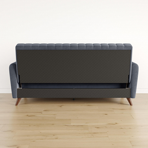 - Короб для белья. В диване предусмотрен просторный короб с двумя отделениями для хранения постельных принадлежностей и других вещей.