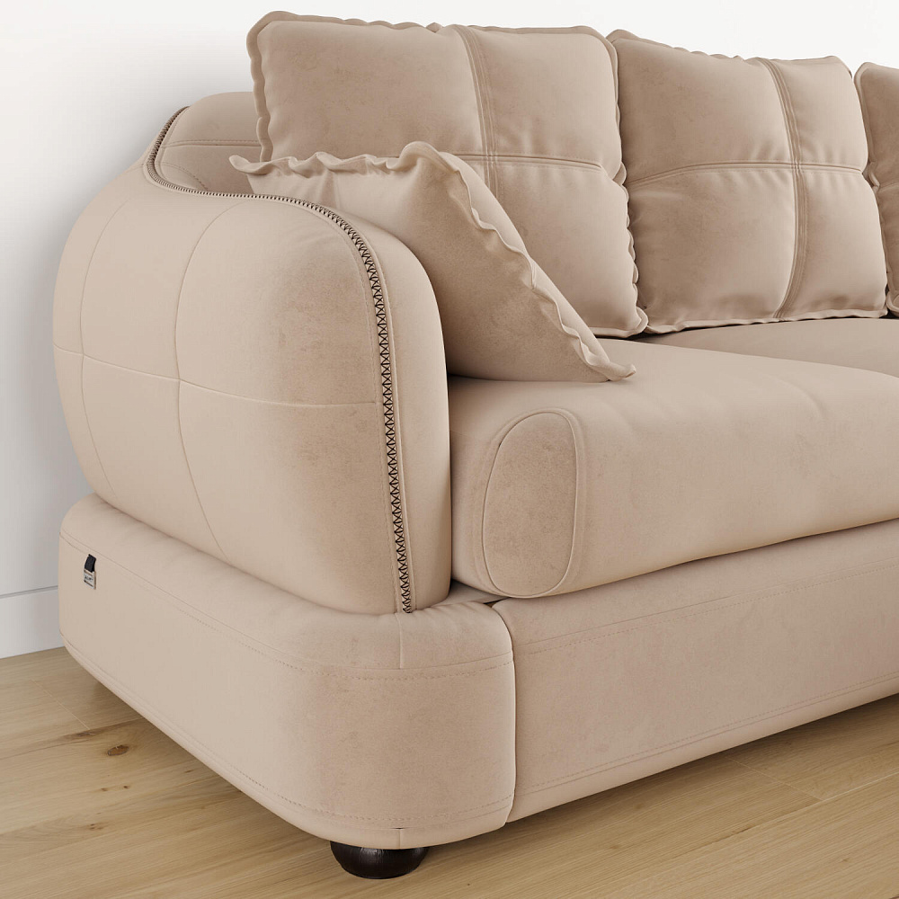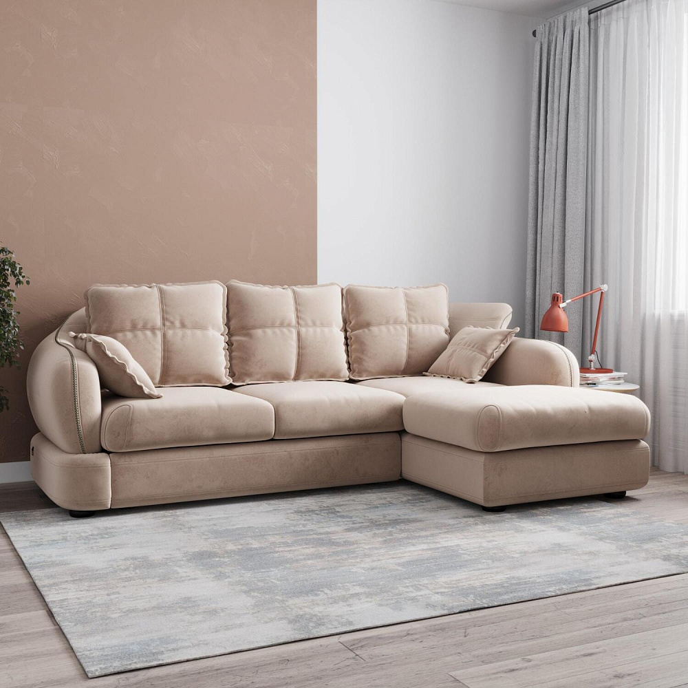 Угловой правый диван «Неаполь» - это идеальное сочетание стиля и функциональности. Плавные округлые линии подчеркивают элегантный внешний вид модели. Диван обладает комфортной посадкой за счет глубокого мягкого сиденья и высокой спинки, что способствует поддержке позвоночника в шейно-плечевой и поясничной областях. На таком вместительном диване удобно отдыхать всей семьёй или разместить большую компанию друзей.