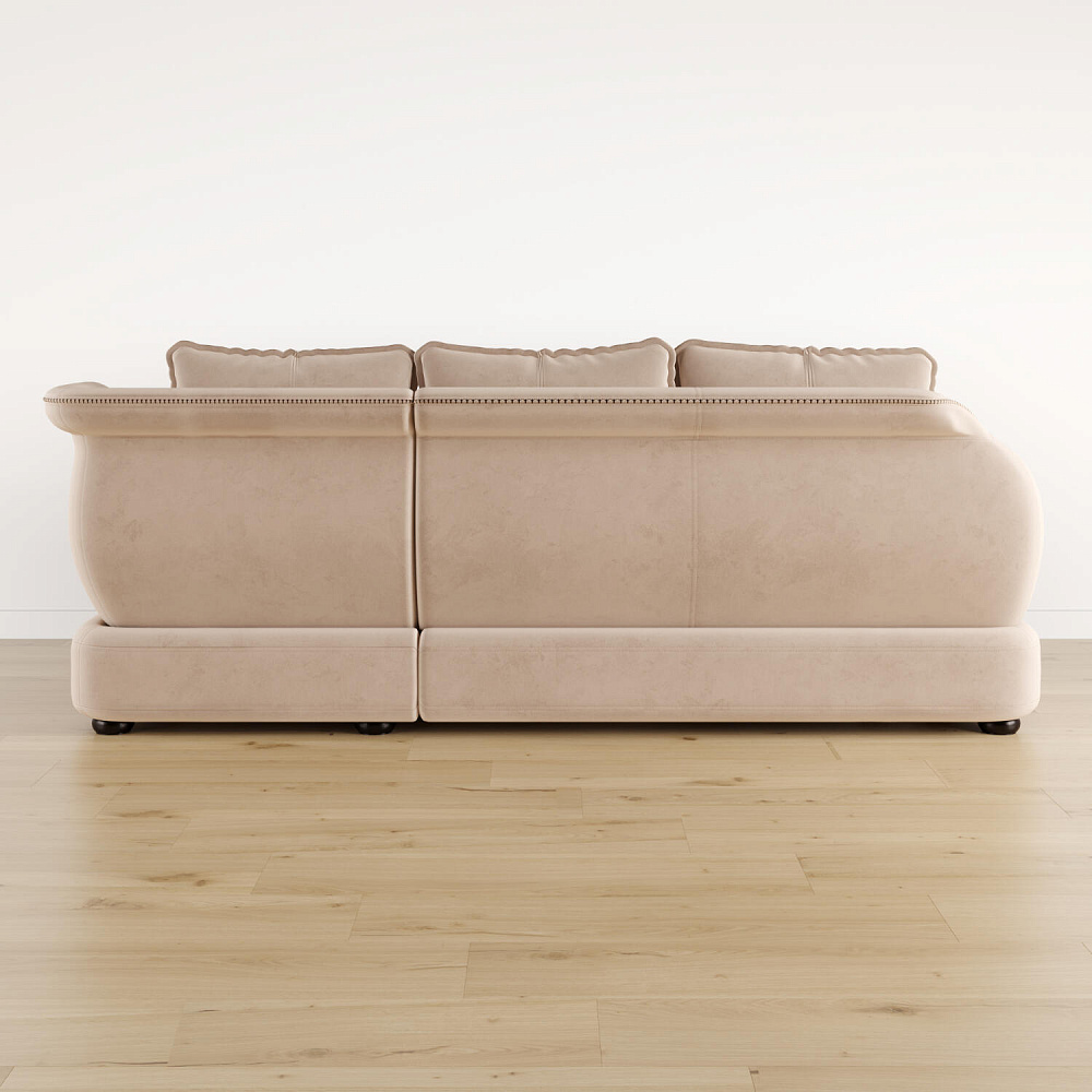 - Дизайн «360 градусов». Задняя часть спинки выполнена в той же обивке, что и основная, позволяя расположить диван в центре комнаты, не испортив внешний вид интерьера.