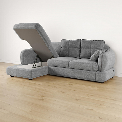 - Ящик для белья. В конструкции дивана предусмотрено вместительное отделение под подъемной угловой частью для хранения постельных принадлежностей.