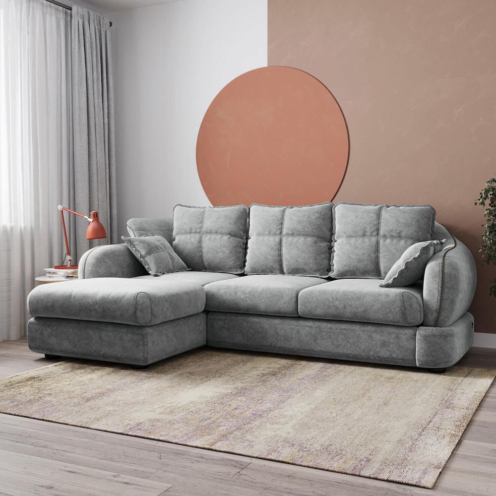 Угловой левый диван «Неаполь» - это идеальное сочетание стиля и функциональности. Плавные округлые линии подчеркивают элегантный внешний вид модели. Диван обладает комфортной посадкой за счет глубокого мягкого сиденья и высокой спинки, что способствует поддержке позвоночника в шейно-плечевой и поясничной областях. На таком вместительном диване удобно отдыхать всей семьёй или разместить большую компанию друзей.