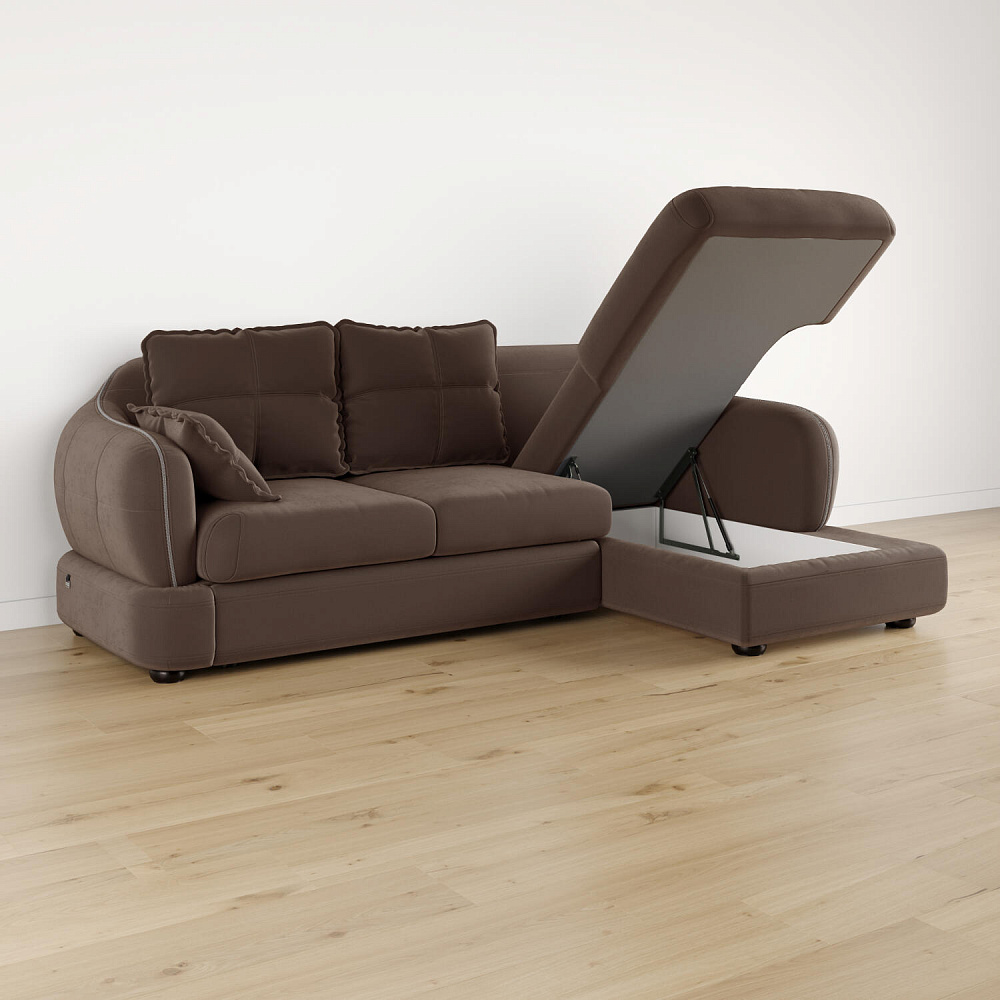 - Ящик для белья. В конструкции дивана предусмотрено вместительное отделение под подъемной угловой частью для хранения постельных принадлежностей.