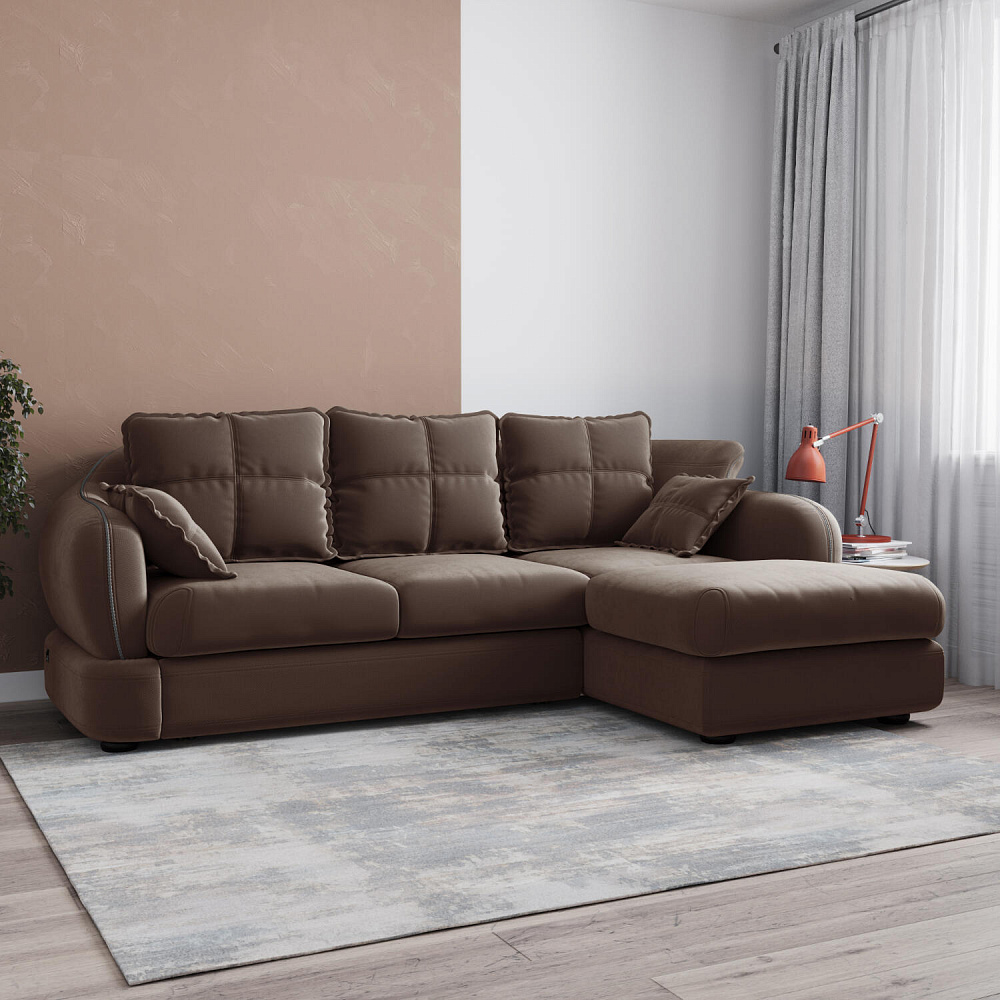 Угловой правый диван «Неаполь» - это идеальное сочетание стиля и функциональности. Плавные округлые линии подчеркивают элегантный внешний вид модели. Диван обладает комфортной посадкой за счет глубокого мягкого сиденья и высокой спинки, что способствует поддержке позвоночника в шейно-плечевой и поясничной областях. На таком вместительном диване удобно отдыхать всей семьёй или разместить большую компанию друзей.