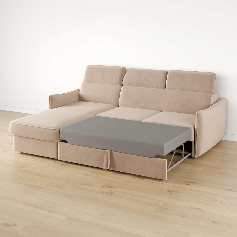 Выдвижное спальное место выполнено в обивке из технической ткани. Цвет технической ткани может отличаться от цвета, указанного на изображениях дивана.