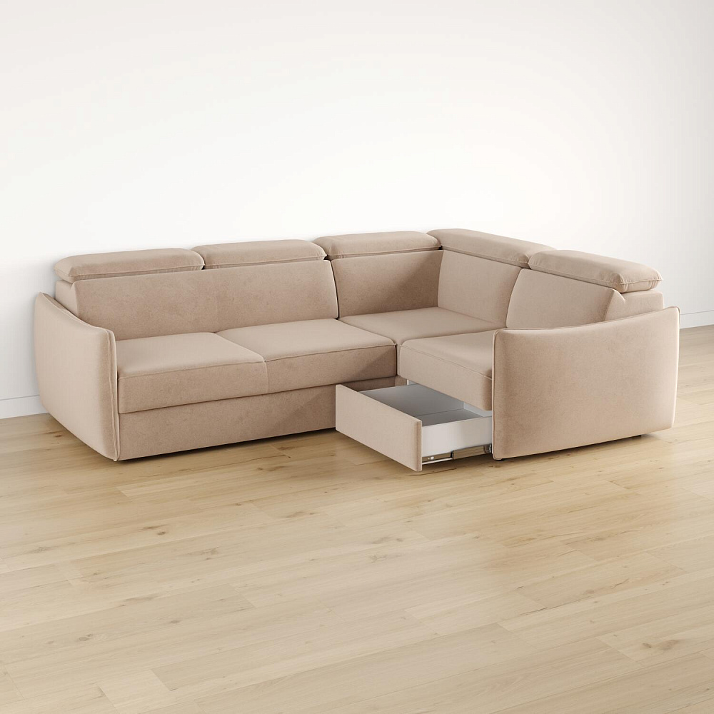 Угловой диван «Торонто» — лаконичная модель станет частью уютной гостиной в современном стиле или лофт. Механизм трансформации «Дельфин» в сложенном виде позволяет сэкономить пространство в комнате, в разложенном — комфортное и удобное спальное место. Регулируемые подголовники имеют шесть положений, поэтому можно подобрать подходящее положение и с комфортном расслабиться после рабочего дня. В кресельной части установлен ящик для хранения постельного белья и других вещей. Аккуратная отсрочка на подлокотниках и подголовниках завершают строгий образ модели.