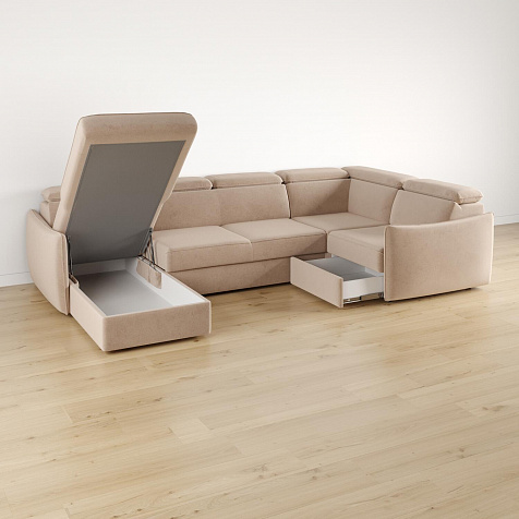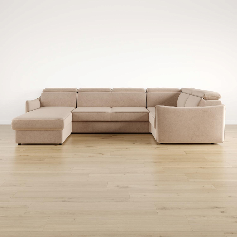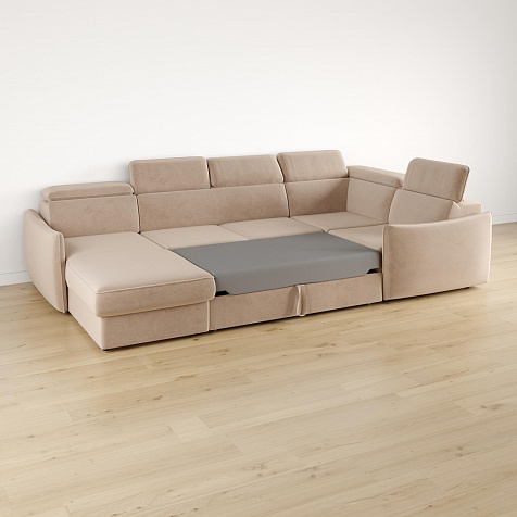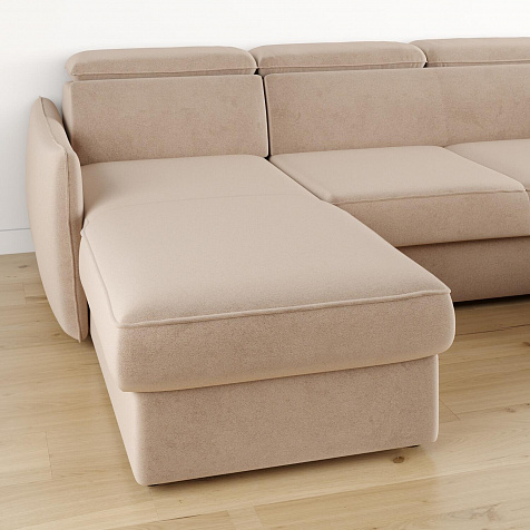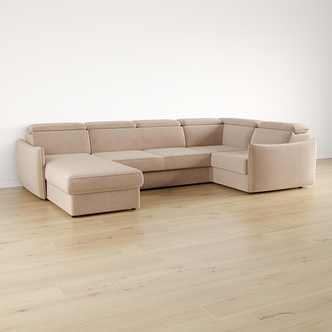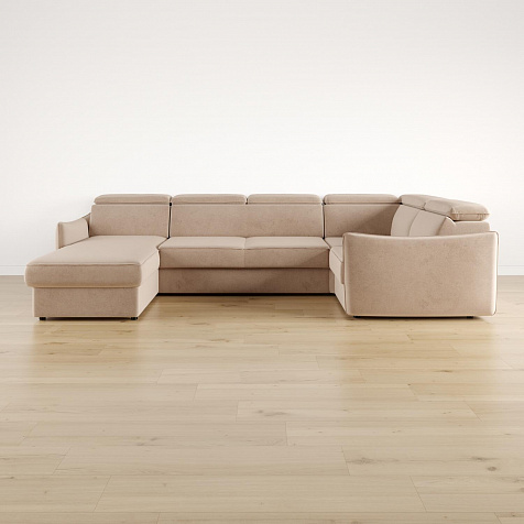 Широкий П-образный диван «Торонто» — идеальное решение для просторной гостиной и большой семьи. Благодаря своим габаритам модель подойдет для семейного просмотра фильмов и встречи гостей. Механизм трансформации «Дельфин» обеспечивает ровное спальное место, что идеально подходит для ежедневного сна. Регулируемые подголовники имеют шесть положений, поэтому можно подобрать подходящее положение и с комфортном расслабиться после рабочего дня. В кресельной части установлен ящик для хранения постельного белья и других вещей. Аккуратная отсрочка на подлокотниках и подголовниках завершают строгий образ модели.