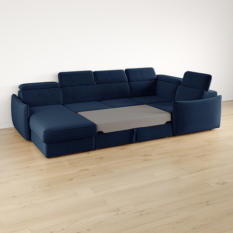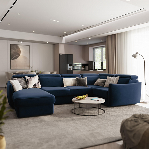 Широкий П-образный диван «Торонто» — идеальное решение для просторной гостиной и большой семьи. Благодаря своим габаритам модель подойдет для семейного просмотра фильмов и встречи гостей. Механизм трансформации «Дельфин» обеспечивает ровное спальное место, что идеально подходит для ежедневного сна. Регулируемые подголовники имеют шесть положений, поэтому можно подобрать подходящее положение и с комфортном расслабиться после рабочего дня. В кресельной части установлен ящик для хранения постельного белья и других вещей. Аккуратная отсрочка на подлокотниках и подголовниках завершают строгий образ модели.