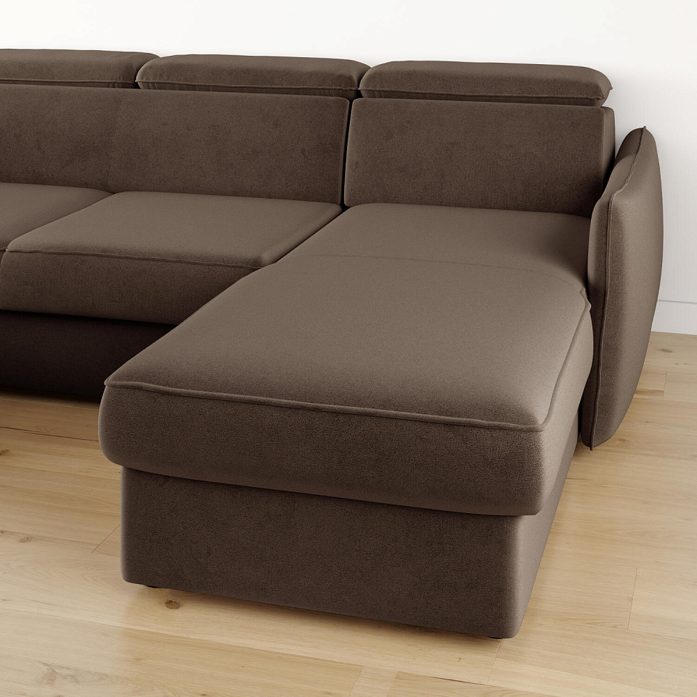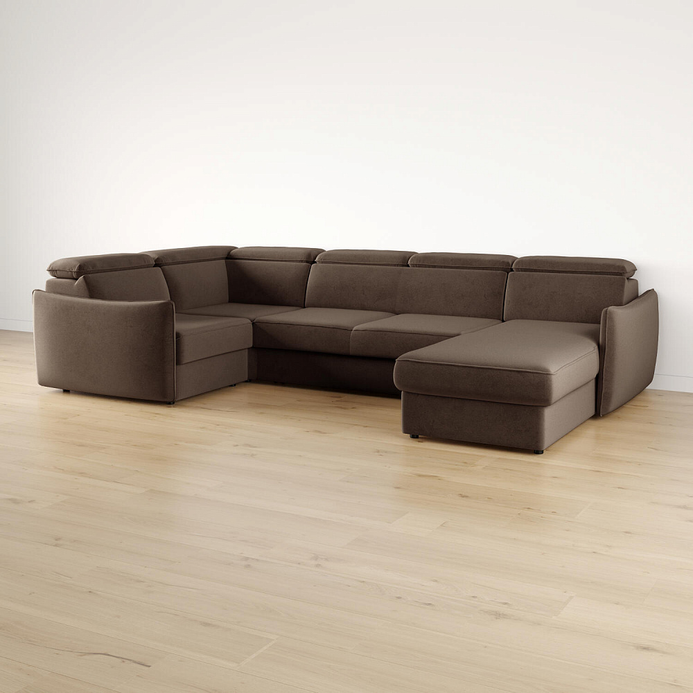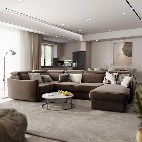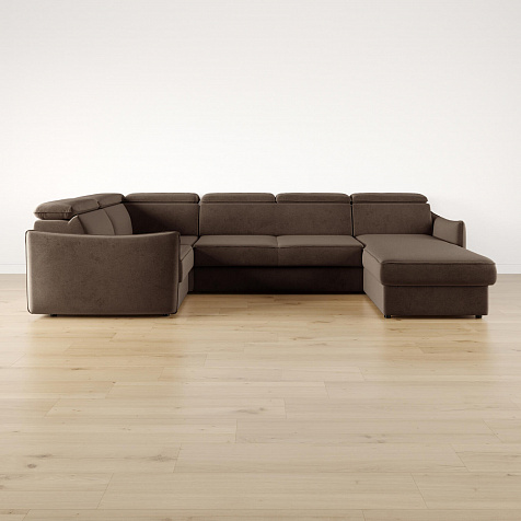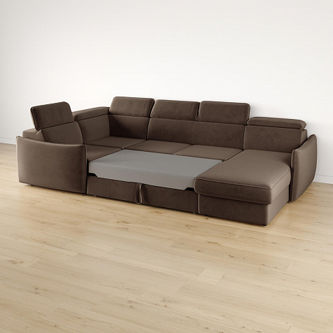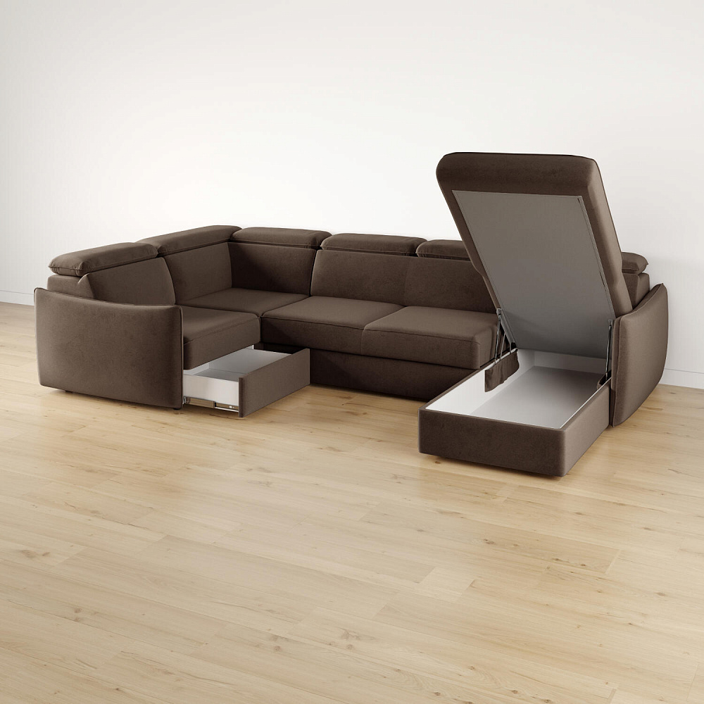 Широкий П-образный диван «Торонто» — идеальное решение для просторной гостиной и большой семьи. Благодаря своим габаритам модель подойдет для семейного просмотра фильмов и встречи гостей. Механизм трансформации «Дельфин» обеспечивает ровное спальное место, что идеально подходит для ежедневного сна. Регулируемые подголовники имеют шесть положений, поэтому можно подобрать подходящее положение и с комфортном расслабиться после рабочего дня. В кресельной части установлен ящик для хранения постельного белья и других вещей. Аккуратная отсрочка на подлокотниках и подголовниках завершают строгий образ модели.