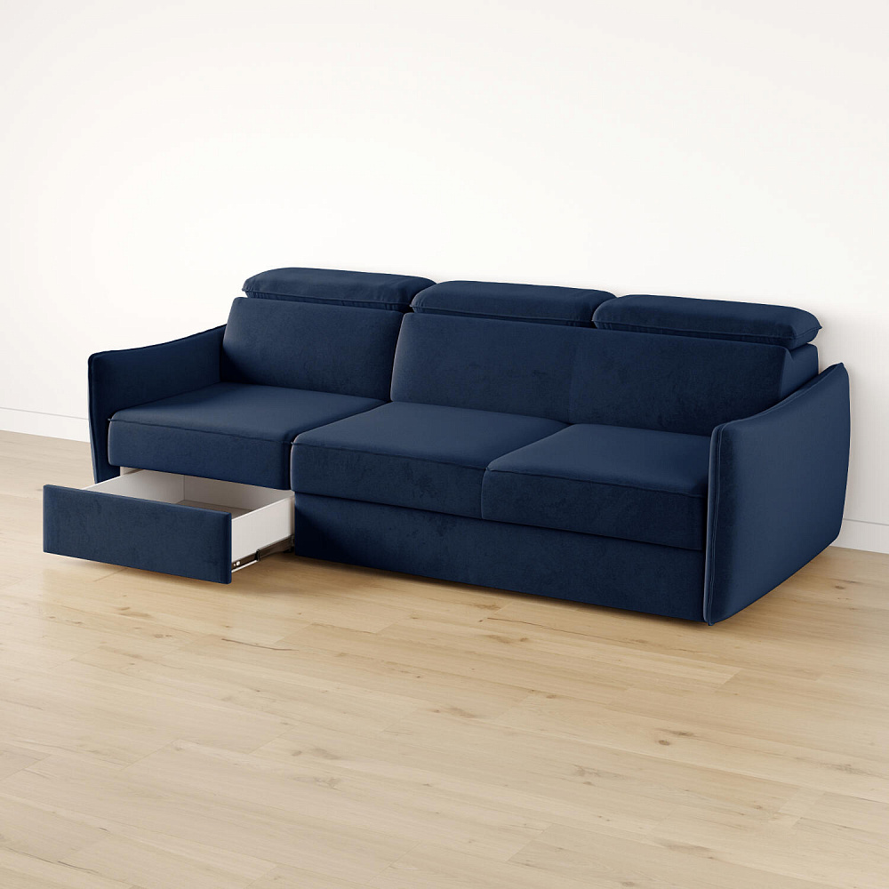 Диван «Торонто» — лаконичная модель станет частью уютной гостиной в современном стиле или лофт. Благодаря выкатному механизму диван легко раскладывается одним движением, что идеально подходит для ежедневного сна. Регулируемые подголовники имеют шесть положений, поэтому можно подобрать подходящее положение для комфортного отдыха. В кресельной части установлен ящик для хранения постельного белья и других вещей. Аккуратная отсрочка на подлокотниках и подголовниках завершают строгий образ модели.