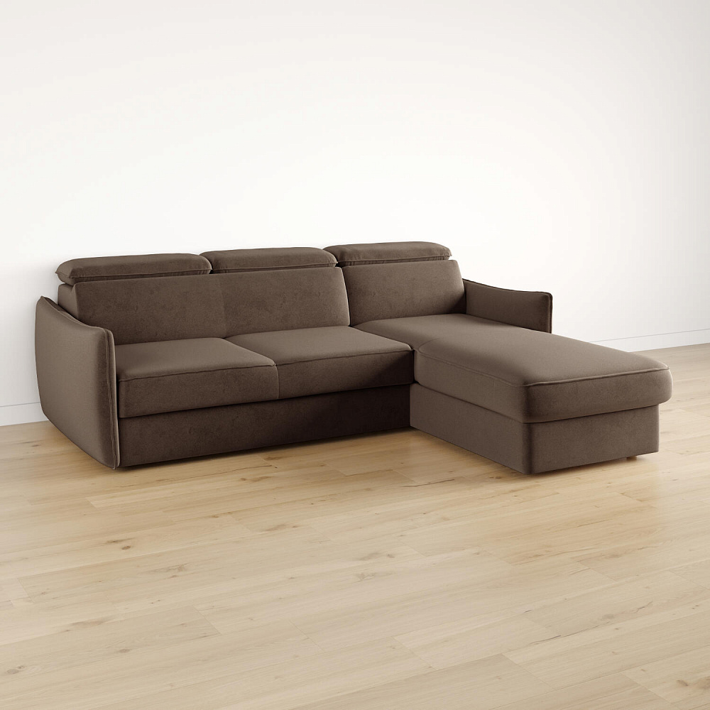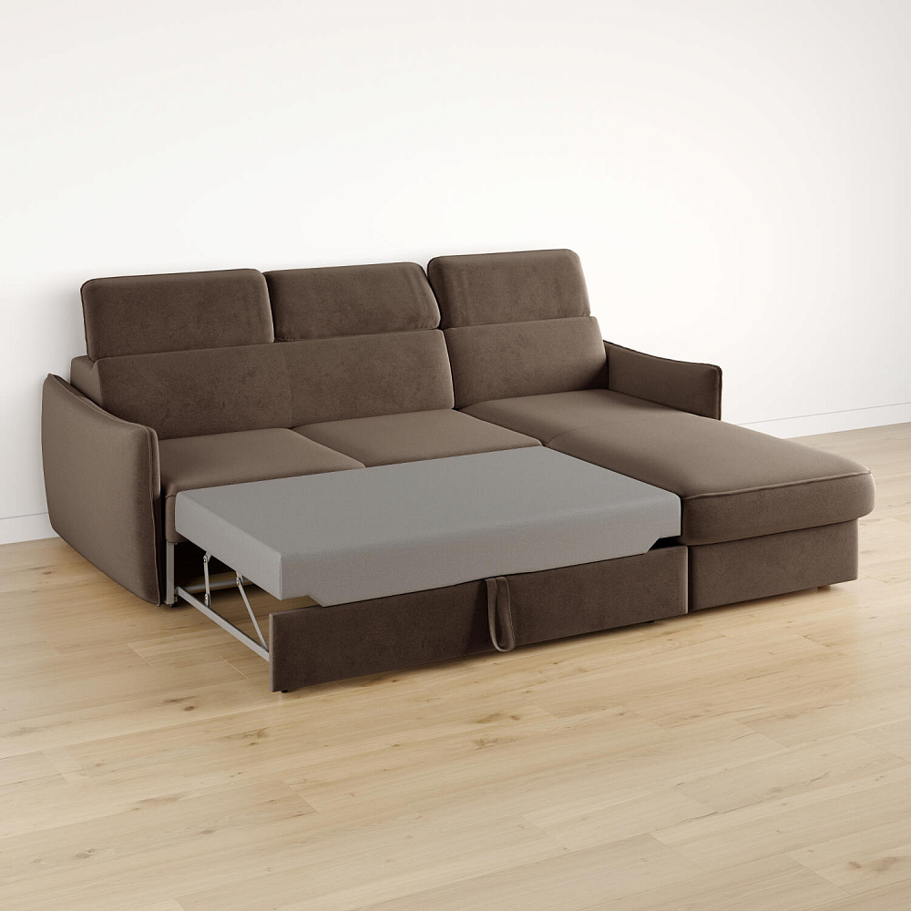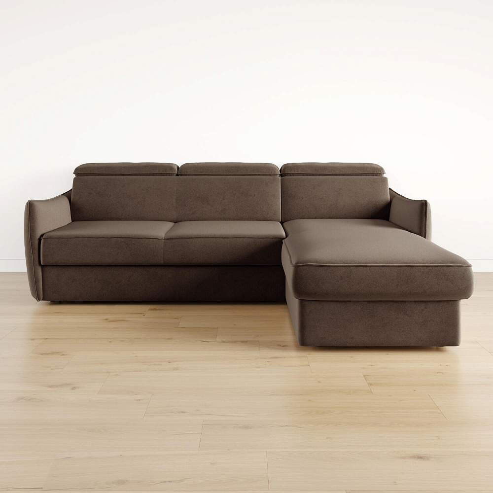 Угловой диван «Торонто» — лаконичная модель станет частью уютной гостиной в современном стиле или лофт. Механизм трансформации «Дельфин» в сложенном виде позволяет сэкономить пространство в комнате, в разложенном — комфортное и удобное спальное место. Три регулируемых подголовника имеют шесть положений, поэтому можно подобрать подходящее положение и с комфортном расслабиться после рабочего дня. В оттоманке установлен ящик для хранения постельного белья и других вещей. Аккуратная отсрочка на подлокотниках и подголовниках завершают строгий образ модели.