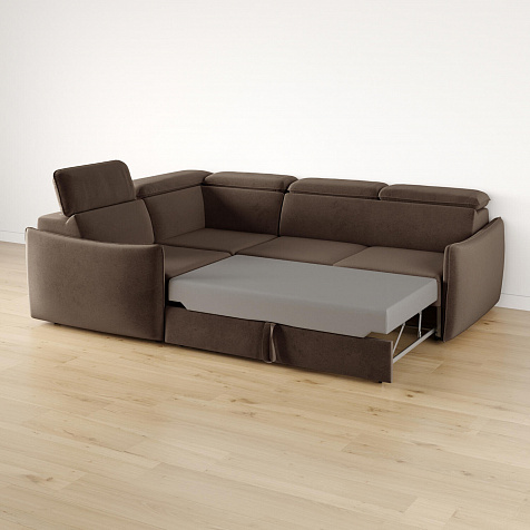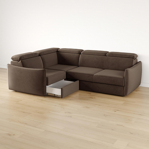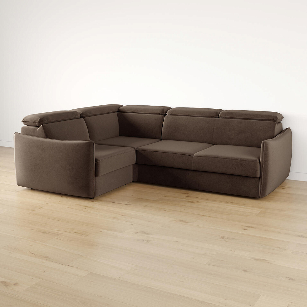 Угловой диван «Торонто» — лаконичная модель станет частью уютной гостиной в современном стиле или лофт. Механизм трансформации «Дельфин» в сложенном виде позволяет сэкономить пространство в комнате, в разложенном — комфортное и удобное спальное место. Регулируемые подголовники имеют шесть положений, поэтому можно подобрать подходящее положение и с комфортном расслабиться после рабочего дня. В кресельной части установлен ящик для хранения постельного белья и других вещей. Аккуратная отсрочка на подлокотниках и подголовниках завершают строгий образ модели.