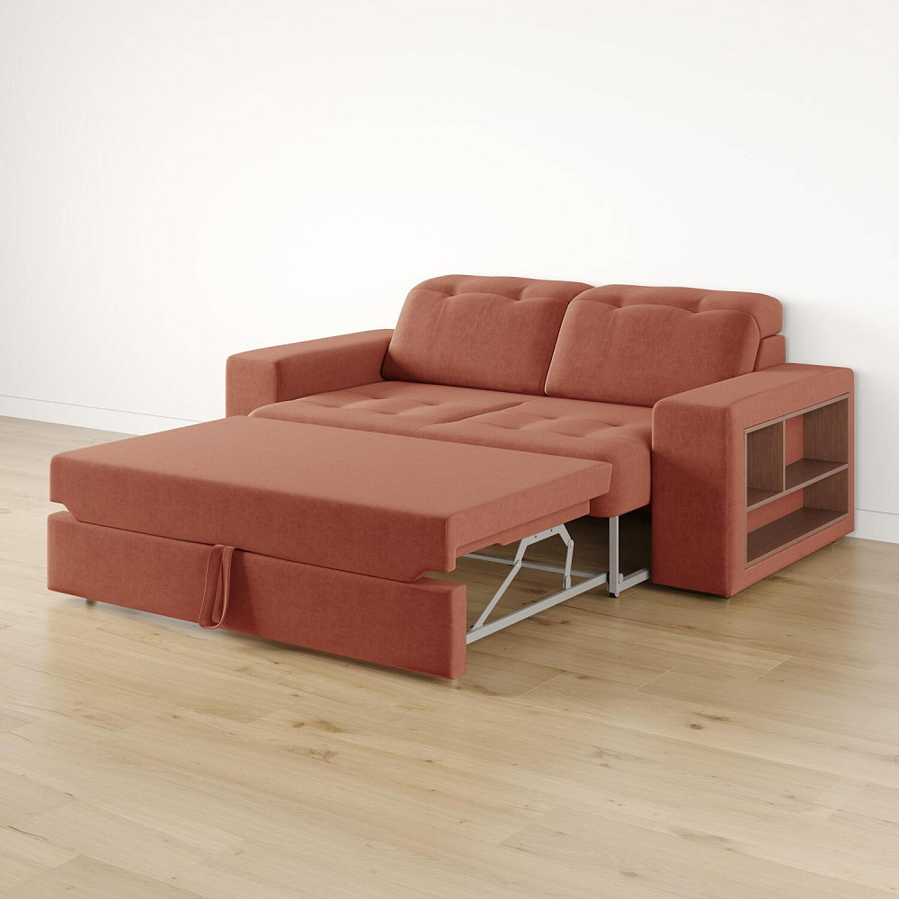 Выкатной механизм трансформации. Диван раскладывается в два движения. Сначала выкатите нижнюю планку до упора, а затем потяните внутреннее сиденье за специальную петлю вверх и на себя. Cиденье поднимется и зафиксируется.