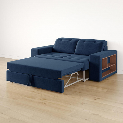 Выкатной механизм трансформации. Диван раскладывается в два движения. Сначала выкатите нижнюю планку до упора, а затем потяните внутреннее сиденье за специальную петлю вверх и на себя. Cиденье поднимется и зафиксируется.