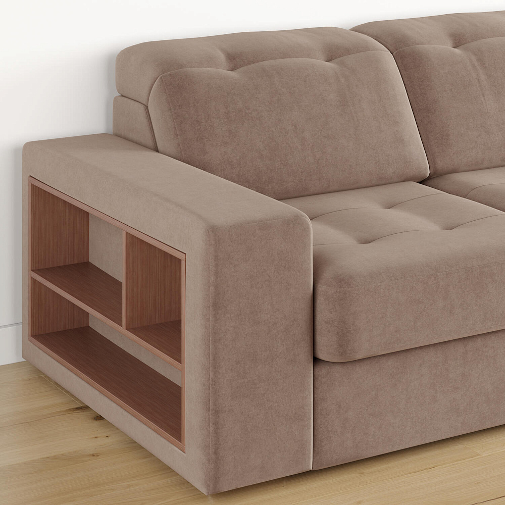 Встроенная декоративная полка. В подлокотник слева встроена декоративная полка из ЛДСП.