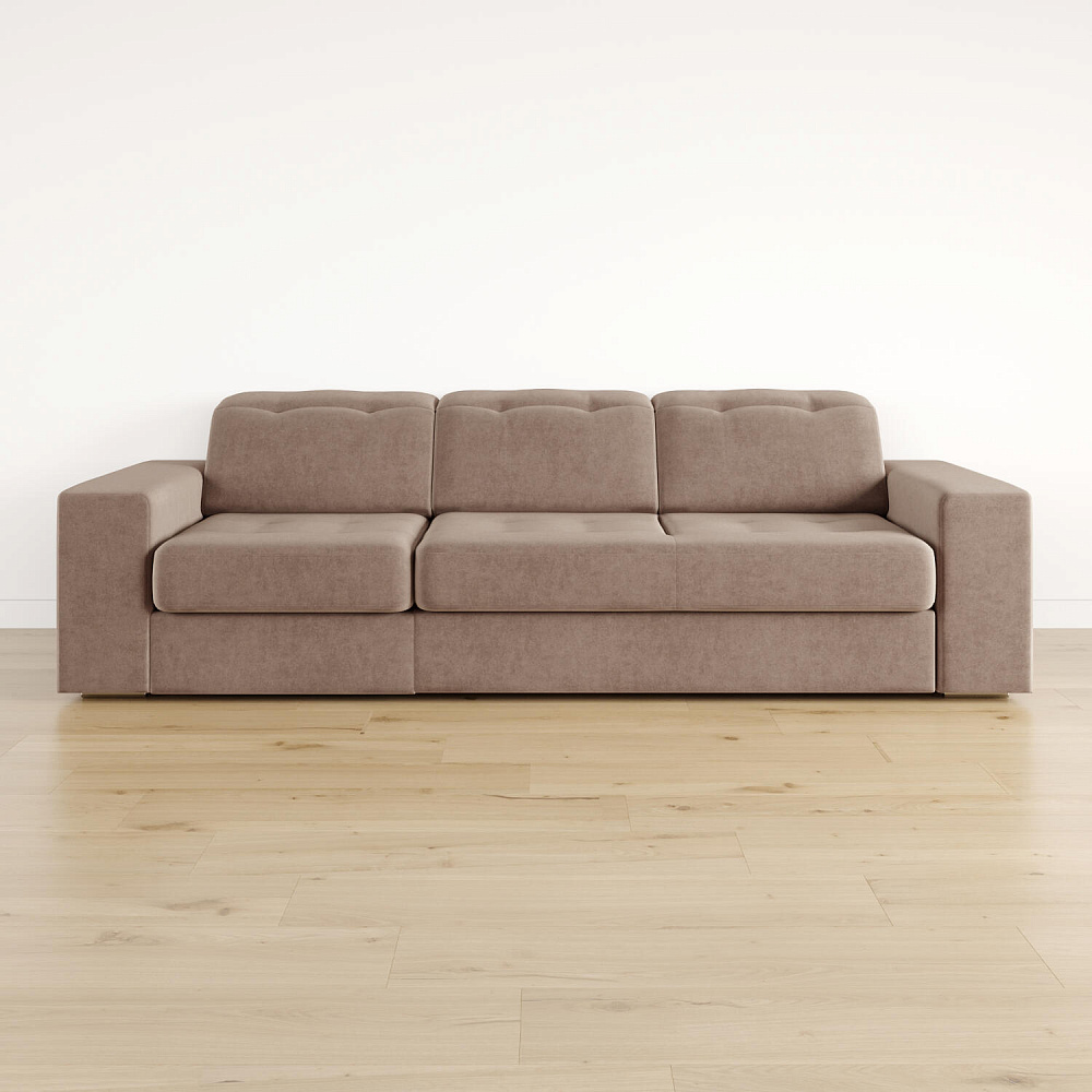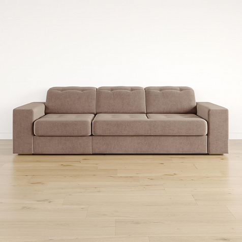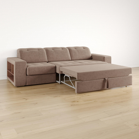 Выкатной механизм трансформации. Диван раскладывается в два движения. Сначала выкатите нижнюю планку до упора, а затем потяните внутреннее сиденье за специальную петлю вверх и на себя. Cиденье поднимется и зафиксируется.